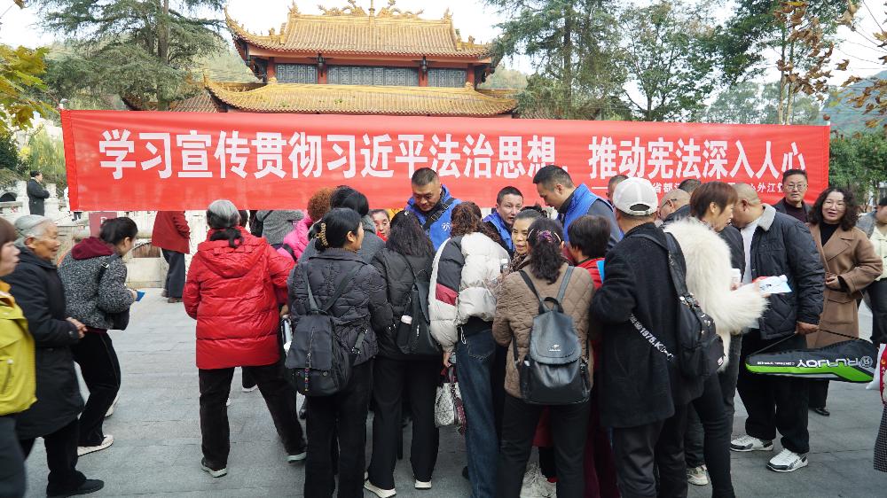 12月4日,外江管理处联合大邑县河长办、大邑晋原街道、青霞街道在大邑城区静惠山公园开展以“学习宣传贯彻习近平法治思想 推动宪法深入人心”为主题的宣传活动,向灌区群众宣传《中华人民共和国宪法》《中华人民共和国法治宣传教育法》《节约用水条例》,激发了他们学习宪法的热情,有效提升了他们的法治观念,当地群众积极参与,近两个小时间发放宣传资料及宣传纪念品300多份。