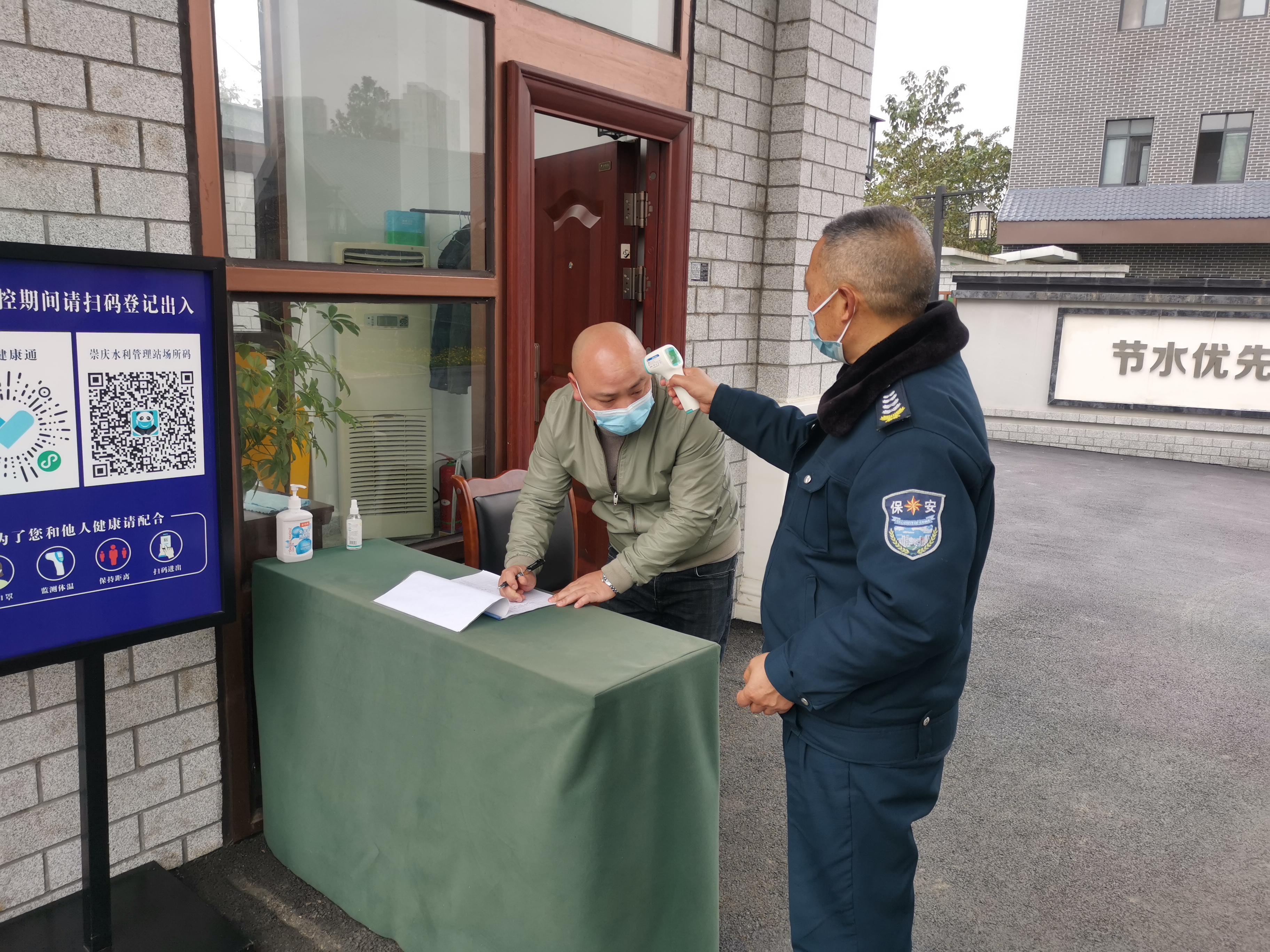 第四步,要求门卫对所有进入站部办公区的外来人员做好体温监测及人员登记工作,严防外部输入。
