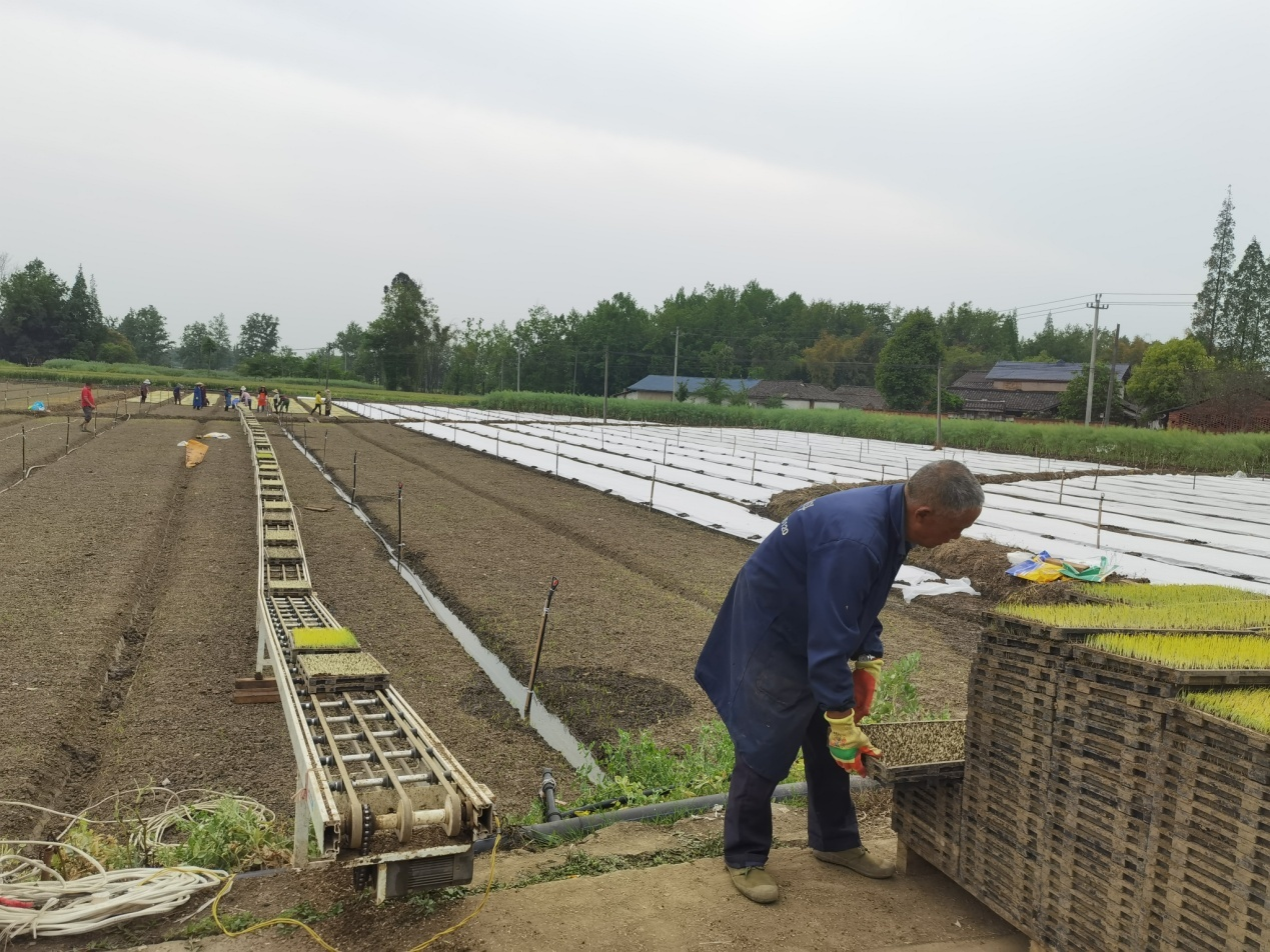 雷雨来一行首先到大邑县红满地农作物种植专业合作社育苗中心参观学习了水稻机插硬盘育秧,现场负责人讲解了培养高标准机插秧苗的技术要点、培育流程等。俗话说“秧好半熟稻”,可见秧苗、种苗的重要性。培育优质秧苗,是保证机插质量,促进水稻前期早发苗,夺取水稻丰产丰收的重要基础。