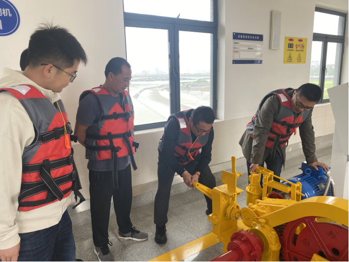 随后,设定千功堰引水枢纽汛期失电场景,对使用备用柴油发电机开启千功堰泄洪闸流程进行现场操作,要求各参与防汛值班人员现场学习、模拟操作。而后对备用电源失效时,紧急情况下手动开启泄洪闸的操作流程进行了演练。