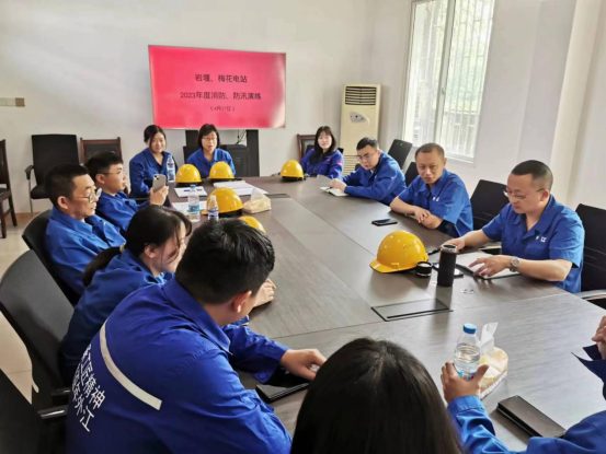 为了提高两站职工的安全防范意识,增强自我保护能力,加强职工的消防意识和各部门协同作战的能力,提高电站防汛抢险、事故处置的应急救援及快速反应能力,岩堰梅花电站于2023年4月27日组织两站全体职工开展了2023年度消防、防汛应急演练。