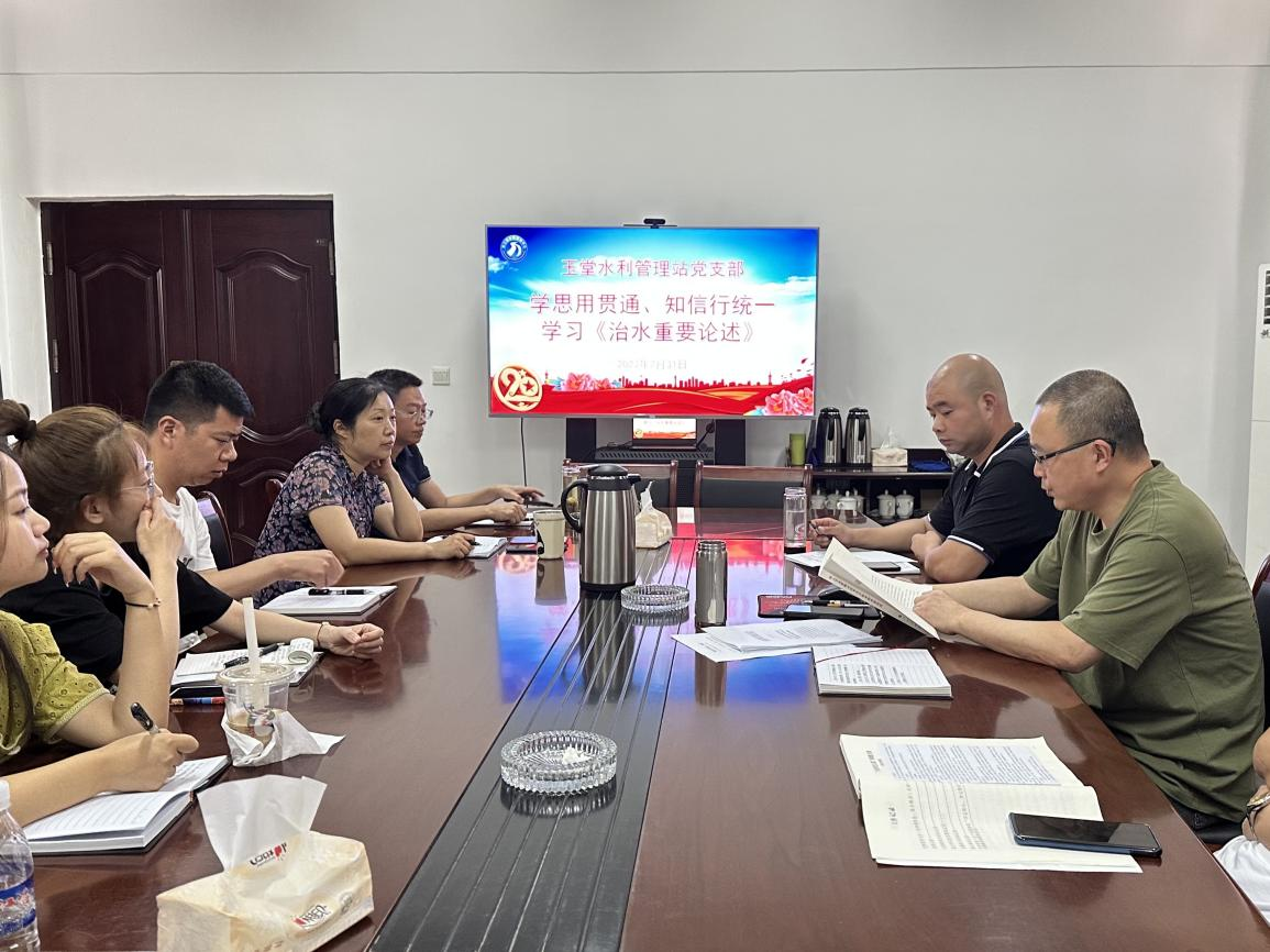 自学习贯彻习近平新时代中国特色社会主义思想主题教育开展以来,外江管理处深学笃用,将“学、研、干、创”4要素环环相扣,在新时代新征程上不断开新局、建新功,全面推动主题教育与外江灌区高质量发展同频共振。7月31日,外江管理处玉堂水利管理站站长郑祥主持召开职工大会,专题学习习近平总书记关于治水的重要论述。
