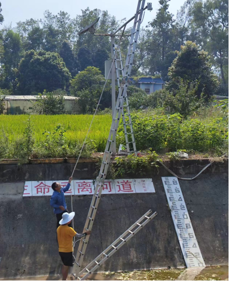 二是开展整改工作。在核实点位信息后,科信科立即组织科室人员与供水科、相关水利管理站和运维公司工作人员到现场进行整改。在潘沟分水洞,工作人员根据现场实际情况,对太阳能板采光问题提出整改方案。在桤木河泄洪闸,工作人员现场对RTU、DTU等设备进行检查,随后商定整改方案。在蔡沟支渠,工作人员现场修改设备网络地址,将实时水位流量数据传回中心物联网管理系统。