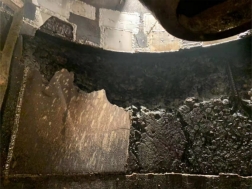 钢板焊接后灌注的混凝土在固化后形成空腔,无法对钢板提供有效支撑。钢板在水流反复推拉下出现焊缝裂纹进而脱落。今年电站在尾水锥管钢板焊接后,在空鼓处钻孔,采用高压灌注环氧树脂进行填充。环氧树脂硬化收缩性小,抗压强度和抗拉强度远远大于传统灌浆水泥。