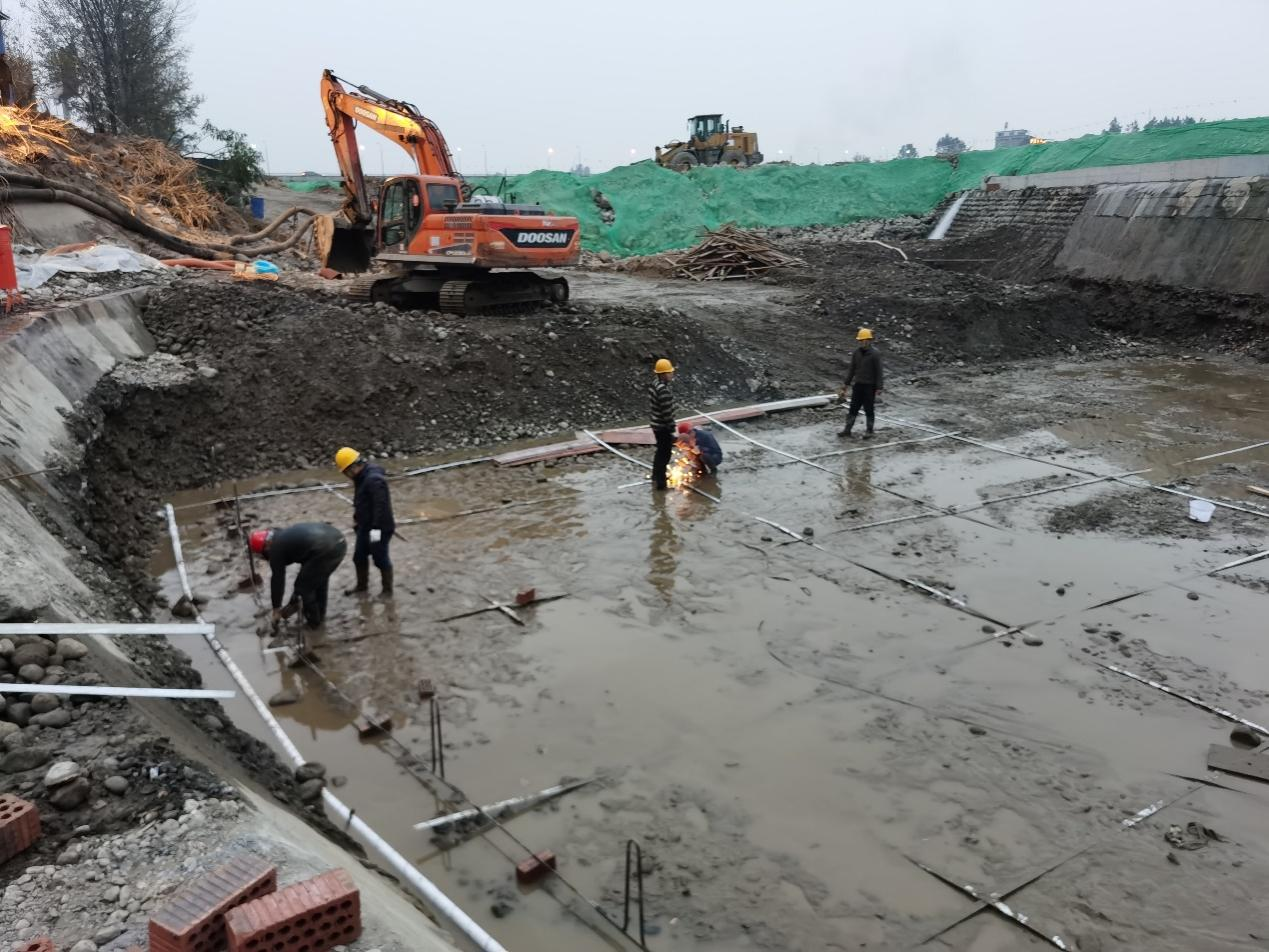 都江堰灌区"十四五"续建配套与现代化改造西河病险水闸整治项目羊头堰枢纽工程正在如火如荼建设中。方渡电站在取水口和尾水底板护坦挖开的有利时机下,主动作为,加铺接地网,有效推动枢纽和电站的防雷接地电阻下降。