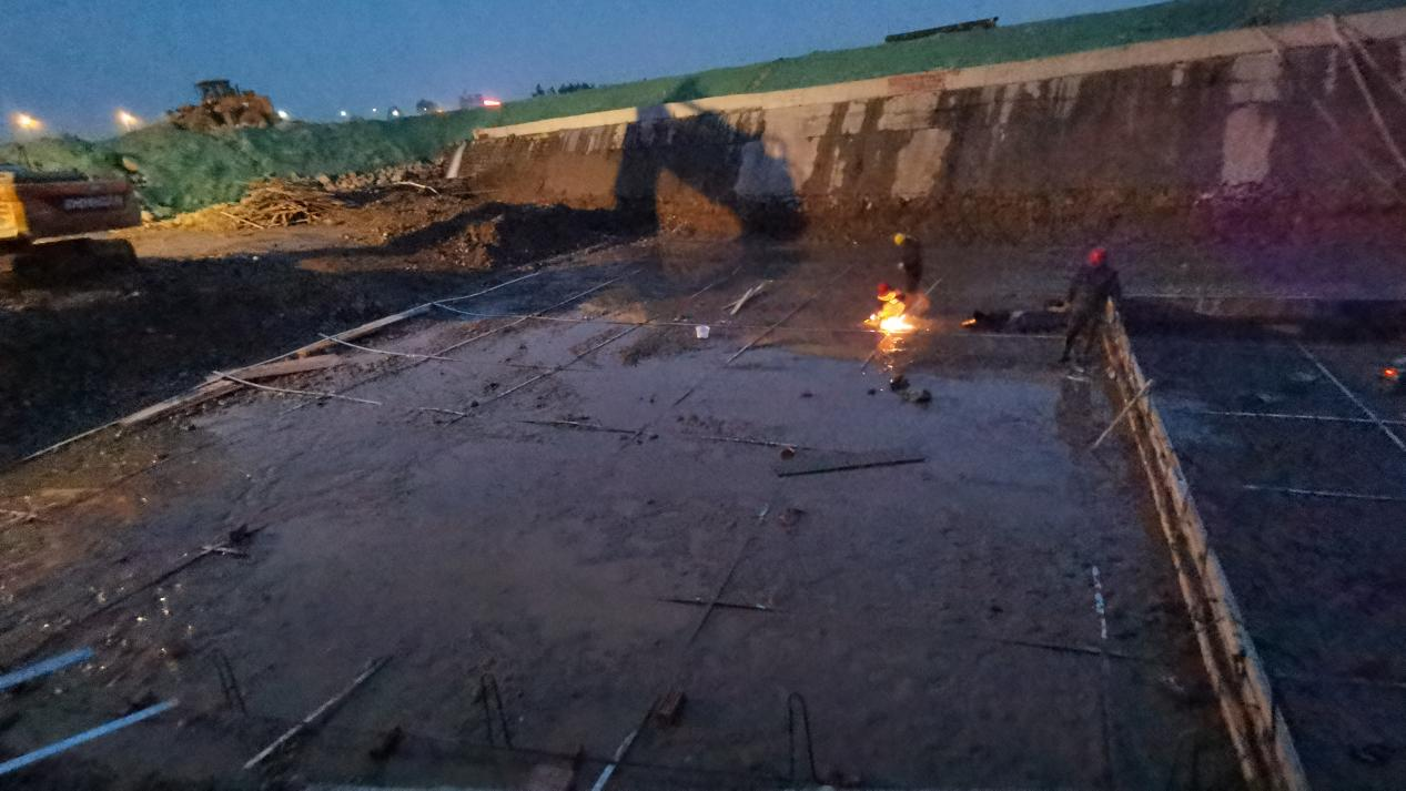 取水口和尾水底板护坦是工程的基础,位于工程低处,浸水漏水严重,该项工作需要挖开地基,平整场地后在最短时间内关模浇筑混凝土。但工程地基全面挖开却是铺设接地网的最佳时机,电站与羊头堰工程施工方积极沟通,加班加点组织施工,在保证质量与安全的前提下,根据工程施工时间节点快速完成埋设接地体和焊接接地网的工作。检修人员奋战在一线,多日连续施工。最终在全体员工的共同努力下顺利完成枢纽和电站接地网铺设,接地电阻从铺设前的6.6欧下降至3.6欧。