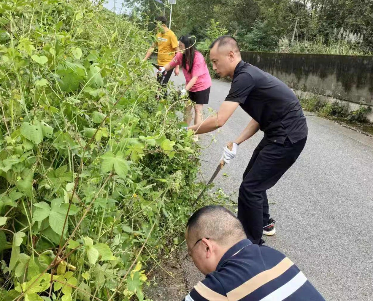 活动中,大家手持镰刀、锯子等工具,对道路及渠道两侧地面生长旺盛的杂草进行清理和维护,并对地上的垃圾进行捡拾。大家分工明确,个个发扬不怕苦、不怕累的精神,经过大家的共同努力,杂草、垃圾等得到了有效清除,道路焕然一新。