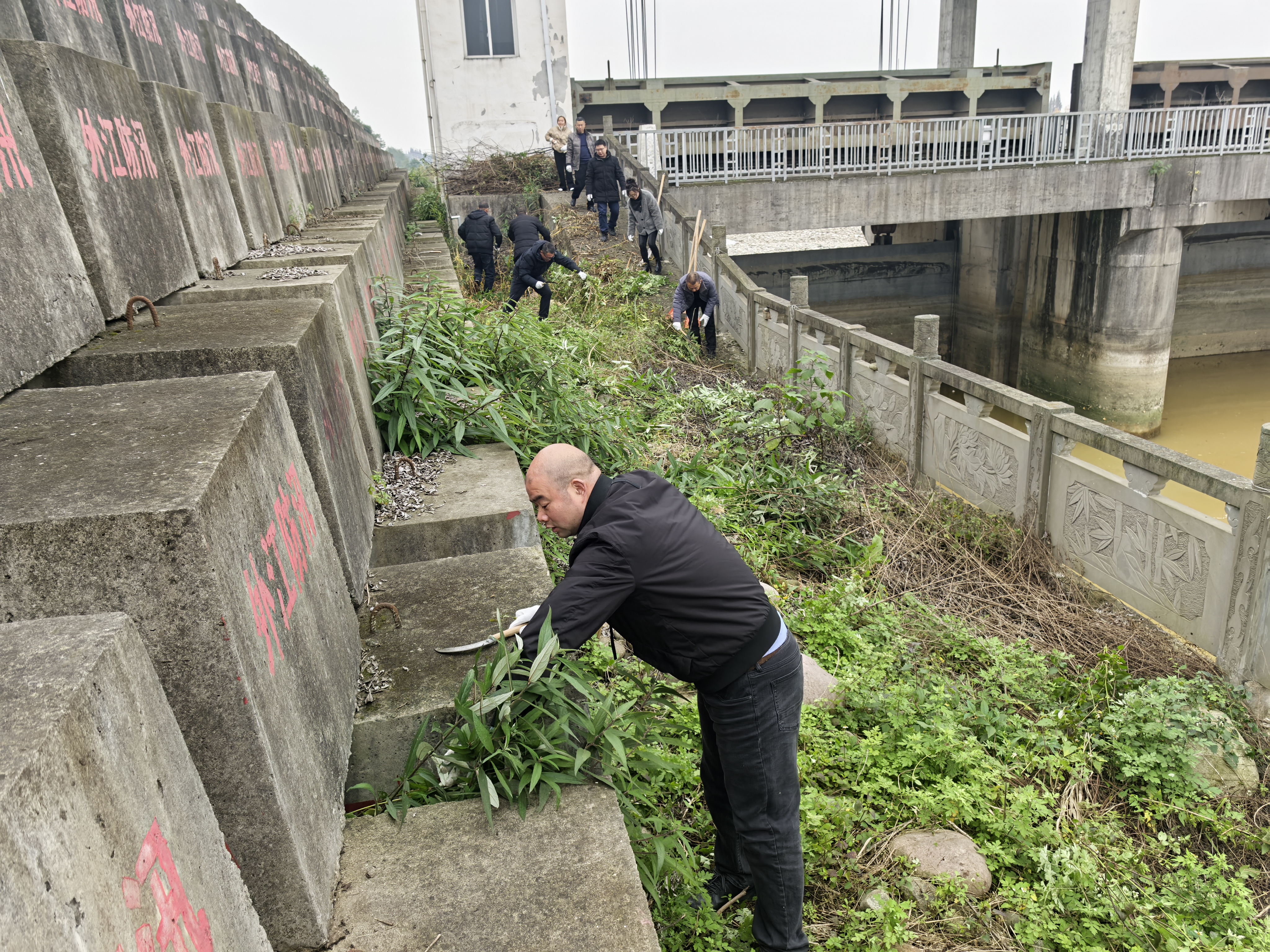 为进一步学习贯彻习近平总书记治水重要论述精神 ,加强河道管理,12月11日,崇庆水利管理站党支部“西河红帆”党员志愿服务队组织全体党员及部分职工到三合堰管理点开展“水清岸净 护河安澜”河岸清理活动,党员和职工们手持铁锹、垃圾袋、扫帚等工具,精神抖擞地集合在一起,为守护这片水域的清洁贡献自己的力量。志愿者们分成几个小组展开清理行动。他们不畏严寒,不怕脏累,仔细捡拾河岸边的塑料瓶、废纸屑、枯枝败叶等垃圾,同时对一些隐蔽角落和难以清理的区域进行了重点攻坚。