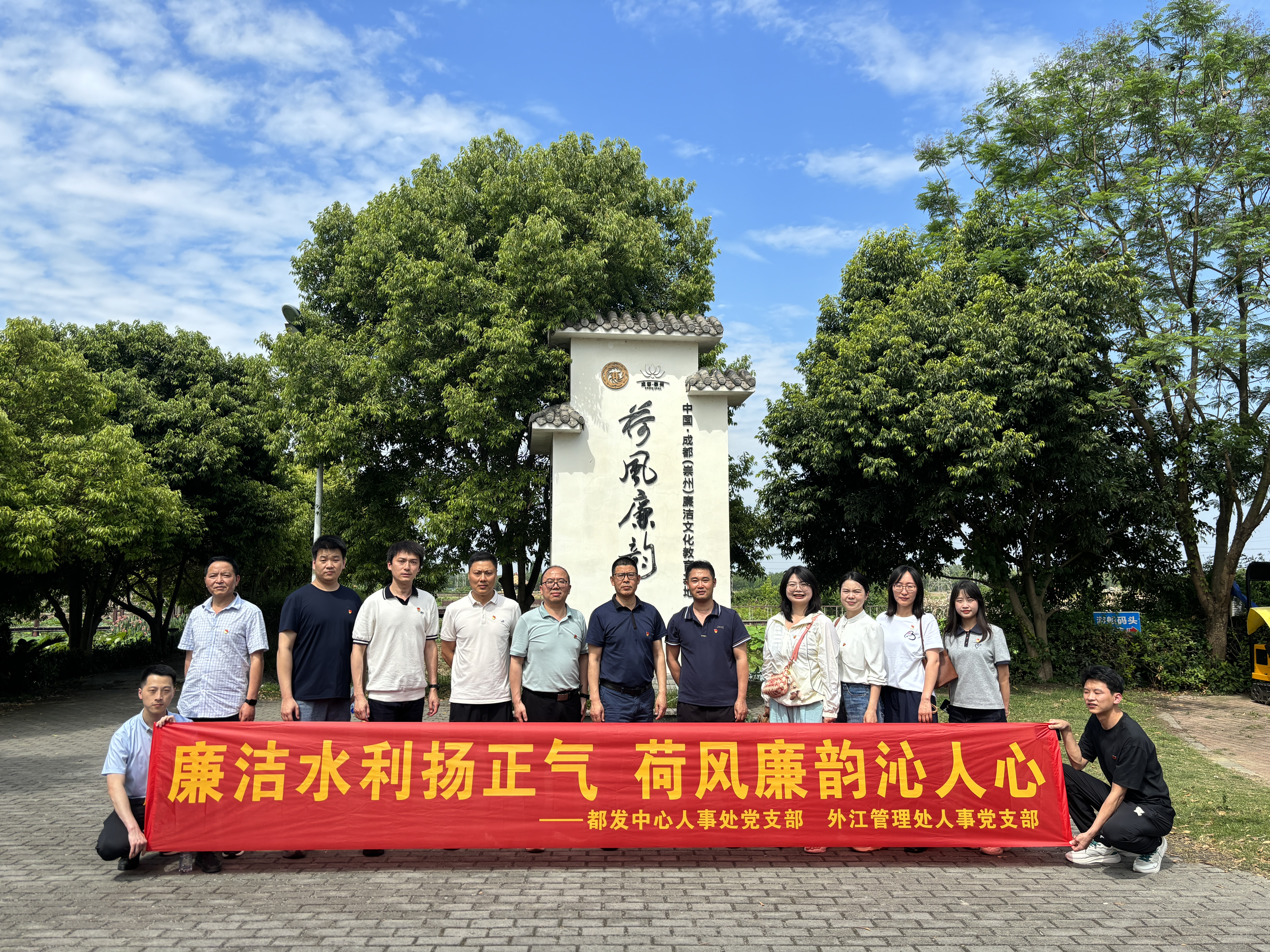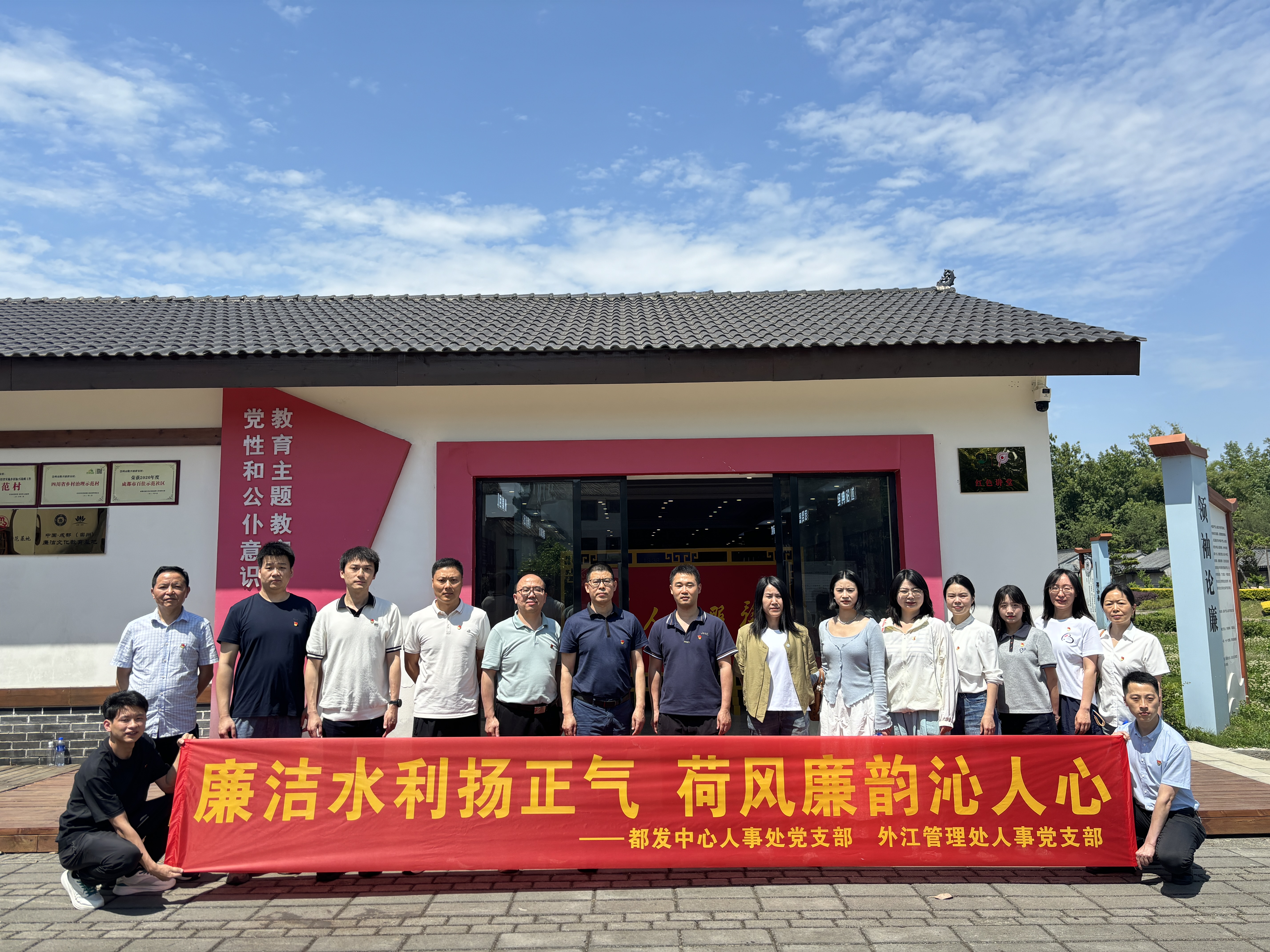 为深入贯彻习近平关于党的作风建设重要论述,落实中央八项规定精神,强化党员廉洁自律意识,5月13日,都发中心人事处党支部与外江管理处人事党支部组织全体党员和入党积极分子,前往崇州“荷风廉韵”廉洁文化教育基地,开展了一场别具意义的主题党日活动。