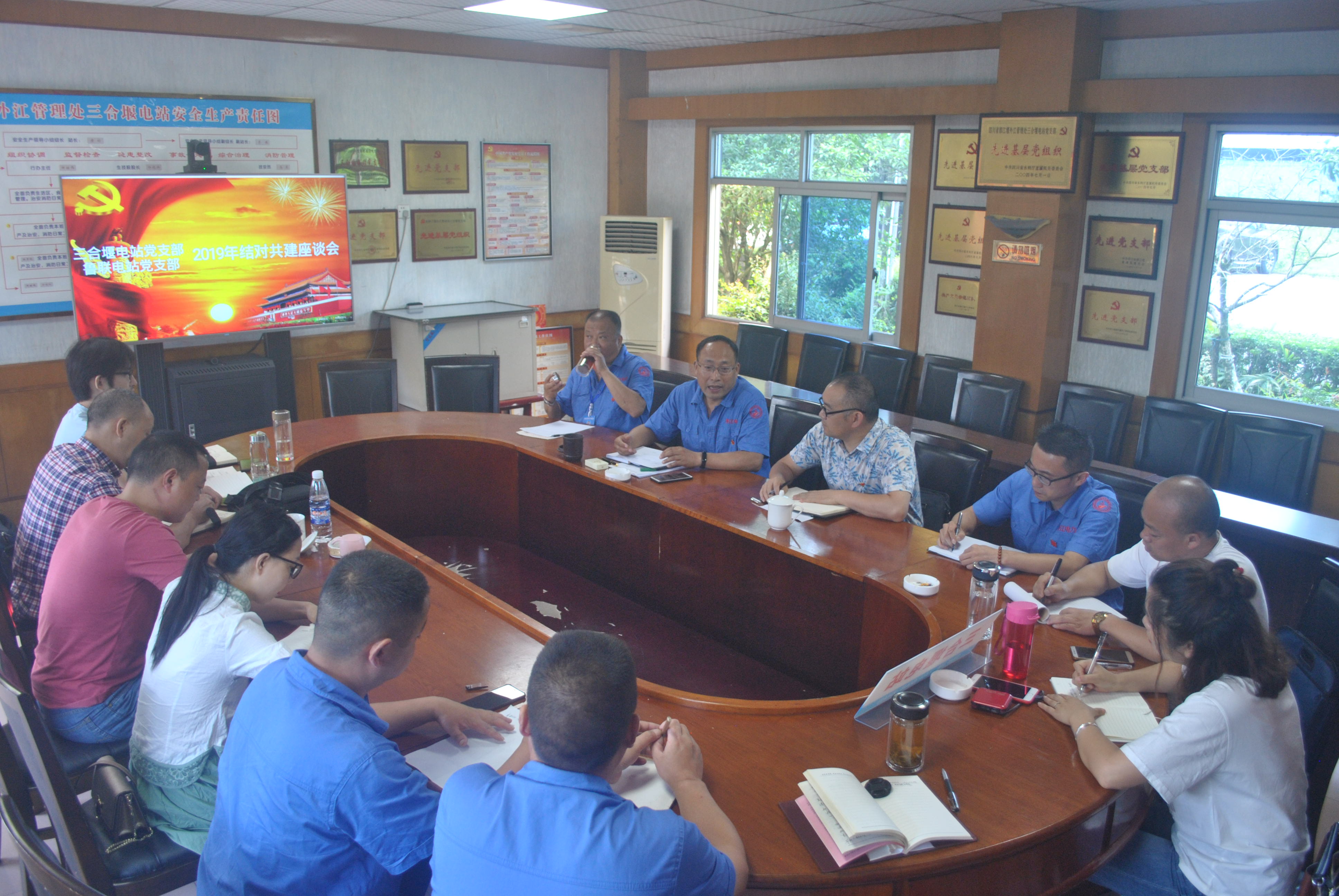 次日,在三合堰电站会议室开展了结对共建座谈会。会上,双方党员相互交流了如何在工作上发挥党支部战斗堡垒作用和日常管理中所面临的困难及解决办法。接着,双方支部书记黄均和吕发荣分别作了“不忘初心、牢记使命、保安全、促效益”和“不忘初心、缅怀革命先烈、牢记使命、助力单位发展”的专题党课。