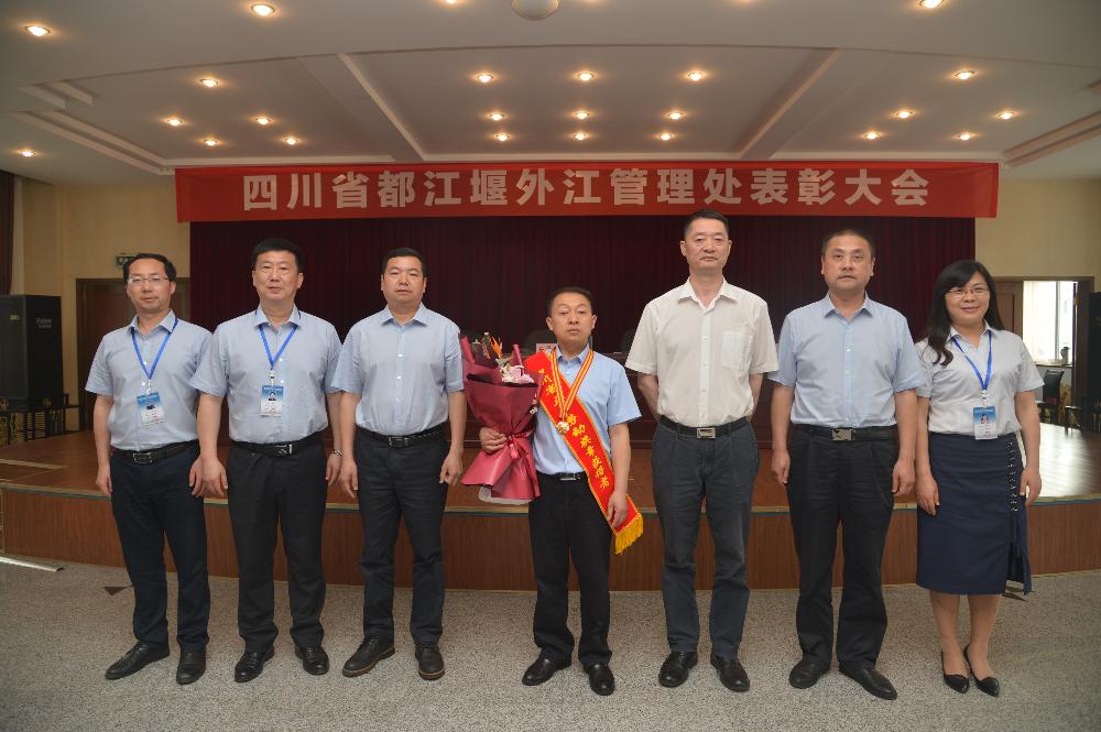 会议在雄壮的国歌声中拉开帷幕,马勇仕主席宣读了《四川省总工会关于授予第六届四川省职工职业技能大赛和2018年省级职工职业技能比赛优秀选手“四川省五一劳动奖章”的决定》,处党委书记欧阳新宣读了《四川省外江管理处关于给予黄端勇同志记功的决定》。随后进行了隆重的颁奖仪式,马勇仕主席为黄端勇同志佩戴绶带和颁发证书,朱泽华处长为其佩戴奖章并颁发奖金,处工会主席师红萍送上鲜花,全场报以热烈掌声。发表感言时黄端勇同志激动地说道:今天是令我难以忘怀的日子,获得“五一劳动奖章”对我来说是莫大的荣誉,也是对我工作的极大肯定,获得这份殊荣离不开领导和同事的支持和帮助,我一定会珍惜这份荣誉,在今后不断加强学习,进一步提高业务水平,发奋工作,力求把工作做的更好、更细、更扎实,用更好的成绩回报领导和同事的信任。