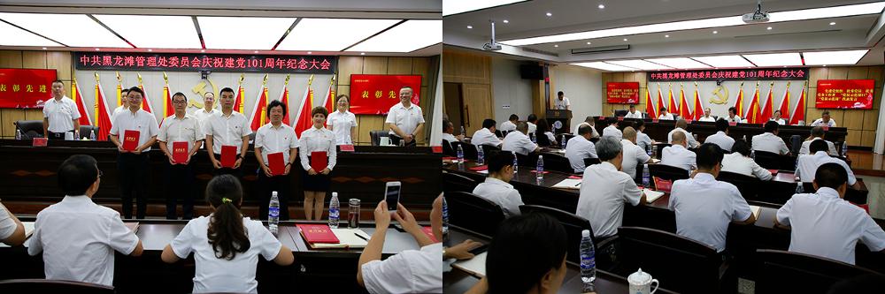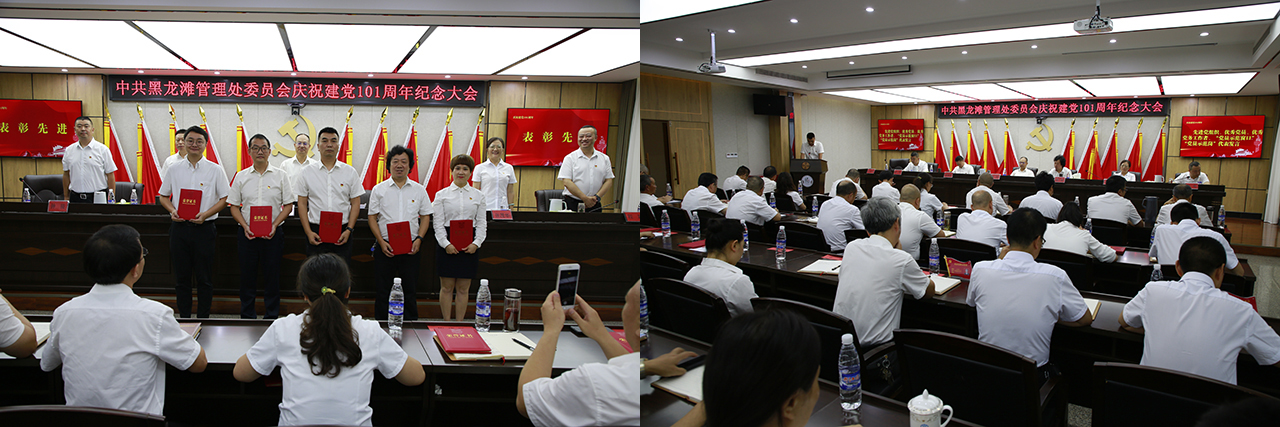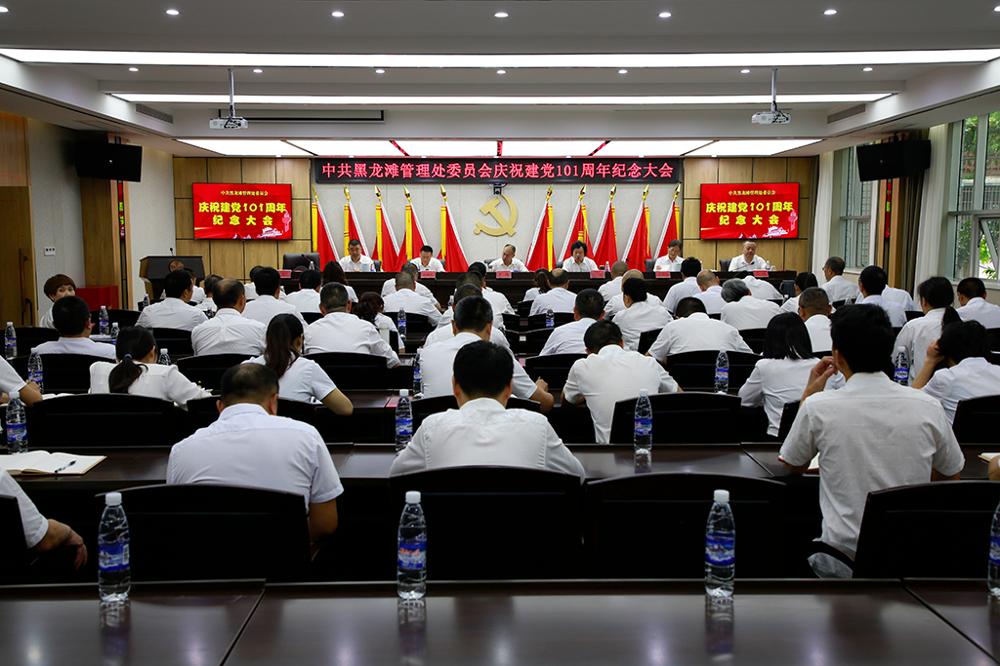 为隆重纪念中国共产党成立101周年,激励全处党员干部坚定理想信念,提升党组织的号召力、凝聚力和战斗力,以更加饱满的热情投身灌区榜样建设,6月27日,黑龙滩管理处召开建党101周年庆祝大会,会议由处党委委员、副处长李超主持,机关全体党员干部及处属单位负责人参加会议。