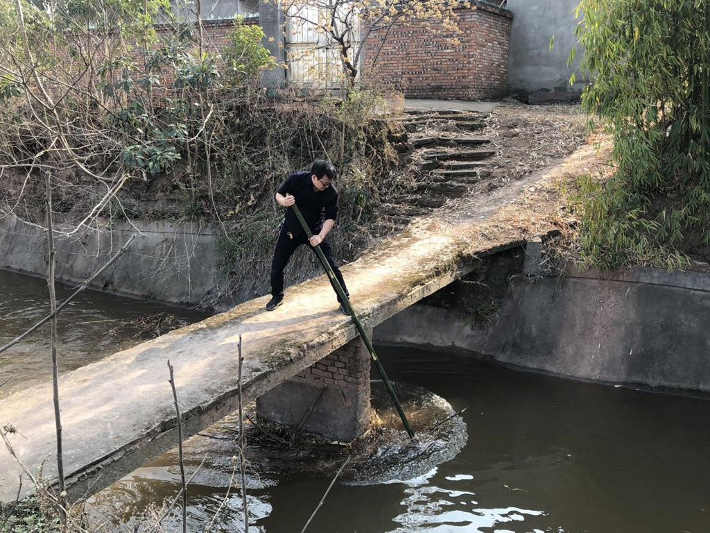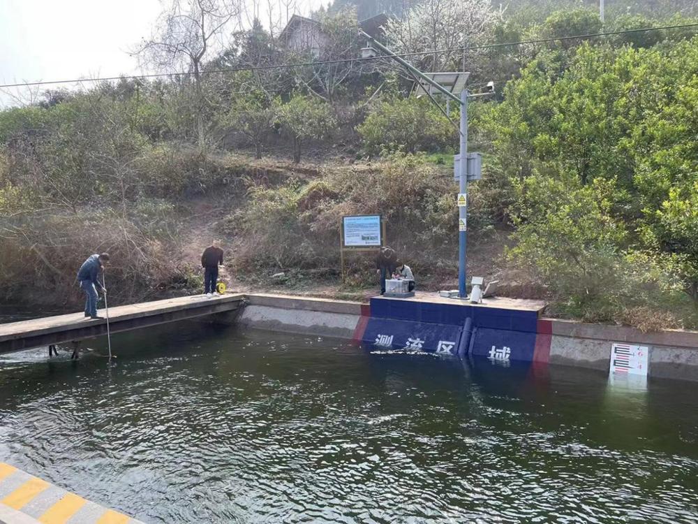 黑龙滩管理处供水科工作人员在南总干渠渠首进行流量测验。