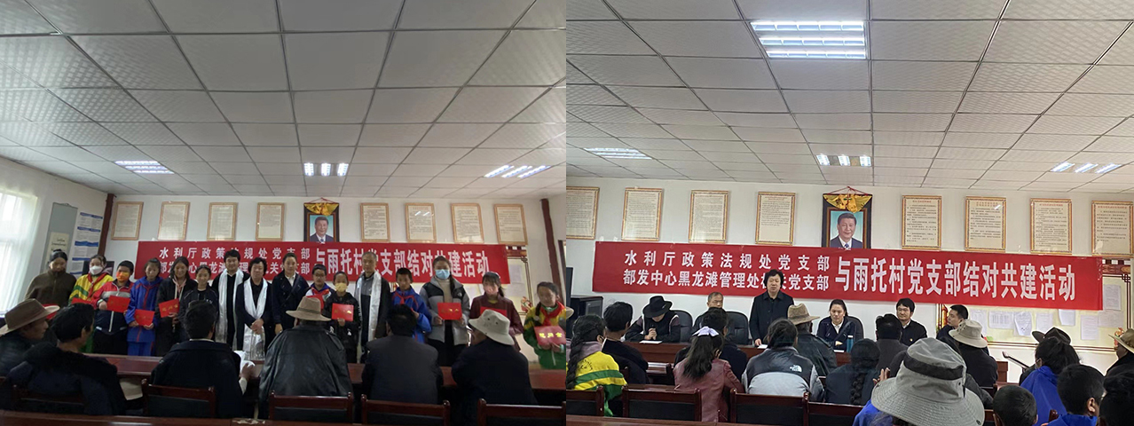 6月11日,由副处长李超带队,党群科负责人梁能,办公室负责人余涛进入甘孜州德格县开展乡村振兴工作。 6月13日,水利厅政策法规处党支部,都发中心黑龙滩管理处机关党支部,雨托村党支部在雨托村村委会会议室开展了支部结对共建活动。活动由水利厅政策法规处干部、雨托村驻村第一书记蒋卫主持。龚垭镇镇长吴丰莉,雨托村村民委员会副主任多吉,雨托村党支部党员代表参加了支部结对共建活动。结对共建活动仪式上,参加单位分别介绍了各自支部基本情况,座谈交流,共同商讨结对帮扶年度计划,帮扶内容,签订2022年支部共建协议等。 支部结对共建活动结束后,工作组参观了雨托村文化站,雨托村红色教育基地,党支部活动阵地,雨托村幼儿园,详细了解雨托村村民结构及收入情况、资源情况、产业发展情况等村情民意。