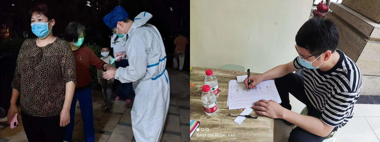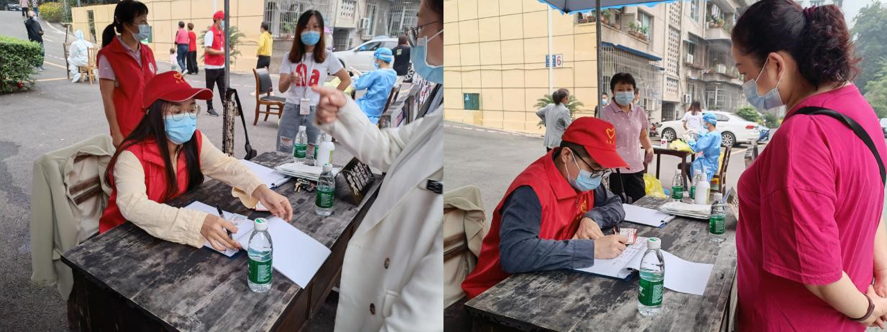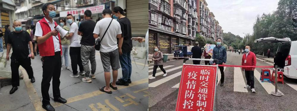战“疫”不停,有一种坚守叫舍小顾大。一线有担当,后方有坚守。终于等到盼望已久的国庆大假,9月30日下班后,党群科青年党员王威和妻子便踏上了回老家的路途。行至途中,了解到仁寿最新疫情防控形势,毅然决定和妻子一起返回仁寿,为疫情防控出一份力。他上午在单位大院出入口为居民办理出入卡,与几十米外卡点值守的妻子携手抗疫;下午便到办公室,收集、整理、记录着一线党员抗疫的点点滴滴,汇聚成一篇篇信息、一条条数据,以自己的方式传播着战“疫”正能量。办公室青年党员唐艳家在广安,原本计划国庆节回家,疫情突袭,她果断放弃回家,留守单位。在简短与家人视频通话报告情况后,她向单位所在社区报到,就近参加单位大院的核酸检测点秩序维护、出入口管理等工作,同时担负起办公室节假日期间日常工作。