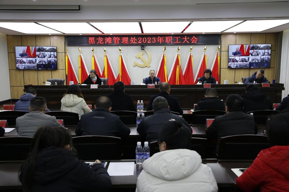 会议指出,2022年黑龙滩管理处工作赢得了都发中心、灌区政府的充分认可,取得了都发中心年度绩效考核第四名的优异成绩。成绩的取得,是管理处领导班子集体智慧的结晶,是全体干部职工立足岗位、尽心尽力尽责的结果,是所有干部职工抓细节、强配合、凝合力的结果。 会议强调,2023年是建设都江堰“国际知名、国内一流”灌区榜样的决胜之年,全处干部职工要尽快由休闲状态调整到战斗状态,按照中心工作部署,结合灌区工作实际,以攻坚克难的拼劲儿、开拓创新的闯劲儿、持之以恒的韧劲儿、竭尽全力的干劲儿,扎实推进灌区各项工作。 会议要求,一是讲政治、顾大局。全体干部职工要深入学习贯彻党的二十大精神,深刻领悟“两个确立”的决定性意义,增强“四个意识”、坚定“四个自信”、做到“两个维护”;所有干部职工要树立大局意识、全局观念,多从都发中心的大局思考、多在工作细节中落实,不断提高政策领悟力与执行力。二是增强工作责任感与使命感。牢固树立主人翁意识,主动将个人发展融入单位发展之中,不断提升履职能力水平,不断提升尽责视野格局,主动适应新形势、落实新部署、实现新目标。三是强化纪律规矩意识,严守廉洁自律底线。在全处范围内营造“爱学习、勤钻研”氛围,激励干部职工学懂弄通法律法规及相关政策,不断锤炼廉洁自律本色,不断提升遵规守纪灵活办事本领。四是聚焦主责狠抓落实。全体干部职工要在抓落实上狠下功夫,在办好事、办成事上狠下功夫,强力推进各项工作落到实处。 黑龙滩管理处班子成员、机关全体职工、处属单位负责人在机关5楼会议室参会,处属单位职工在站会议室参会。