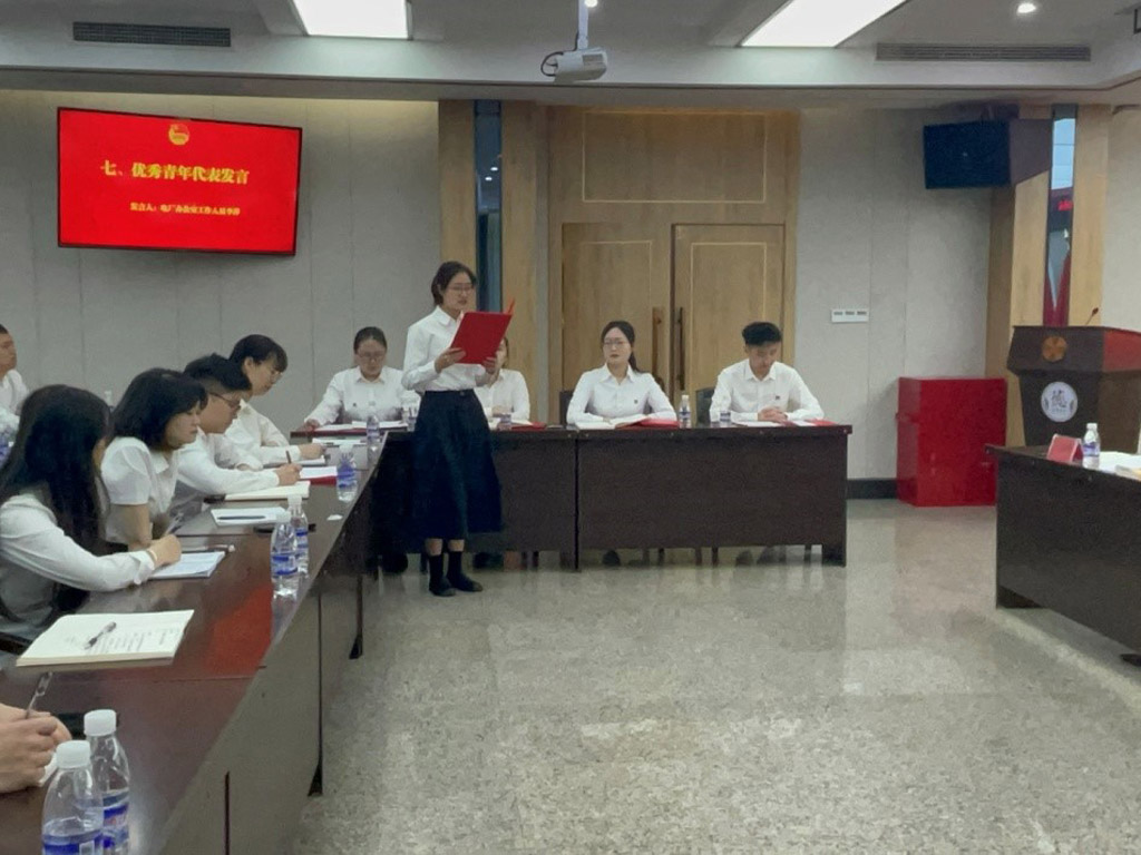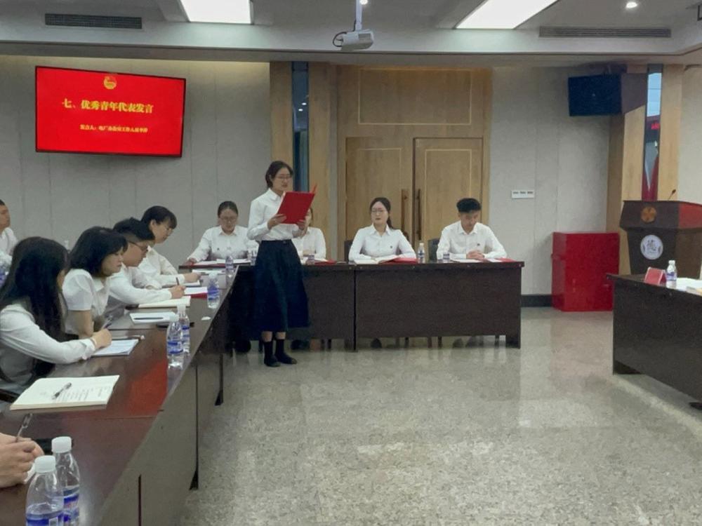 值“五四”青年节来临之际,黑龙滩管理处组织召开青年理论学习小组学习贯彻习近平新时代中国特色社会主义思想主题教育动员会暨2022年度优秀共青团员表彰座谈会,受党委书记、处长曾理委托,处党委委员、副处长钟陵出席会议并为青年团员讲团课《牢记嘱托跟党走 青春建功新时代》,党群科负责人、全处青年团员参加了此次会议。