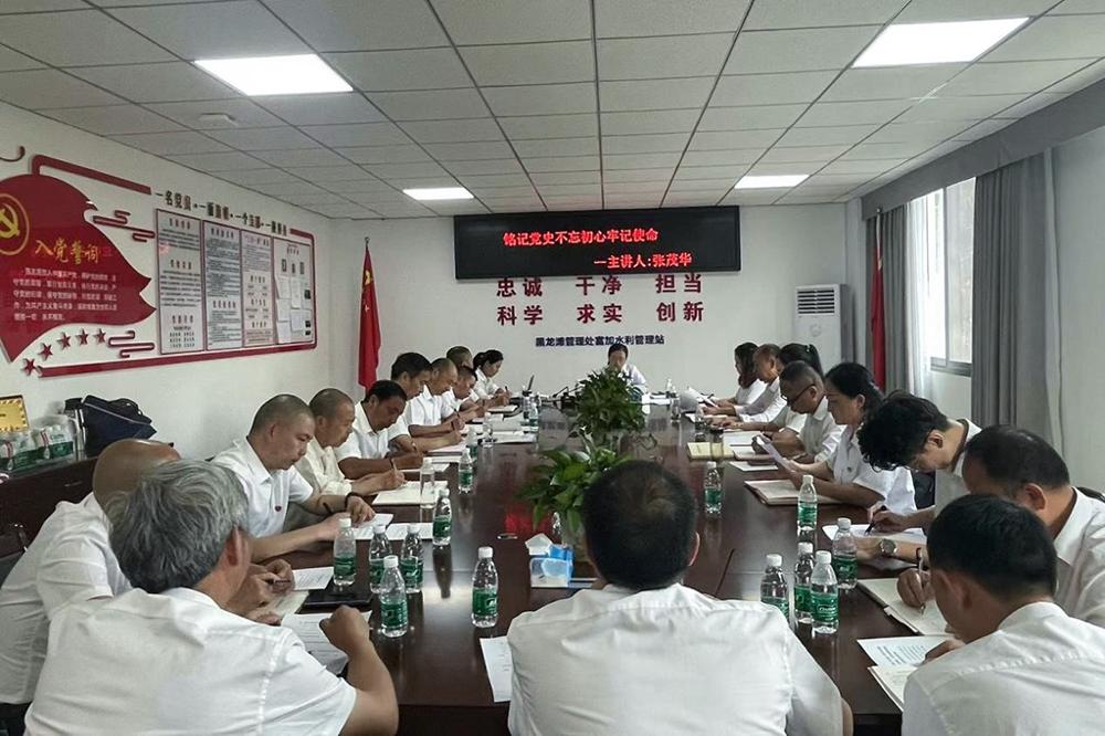 调研结束后,在富加水利管理站召开了座谈会。全体党员重温了入党誓词,集中学习了习近平总书记《论党的自我革命》部分章节。处党委委员、副处长张茂华以《铭记党史 不忘初心