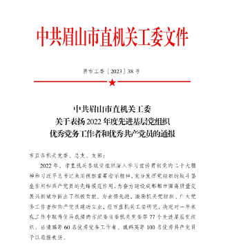 近日,中共眉山市直机关工委发布《关于表扬2022年度先进基层党组织优秀党务工作者和优秀共产党员的通报》,都发中心黑龙滩管理处党委被评为市直机关2022年度先进基层党组织,梁能、林斌等三位同志分别被评为优秀共产党员、优秀党务工作者。