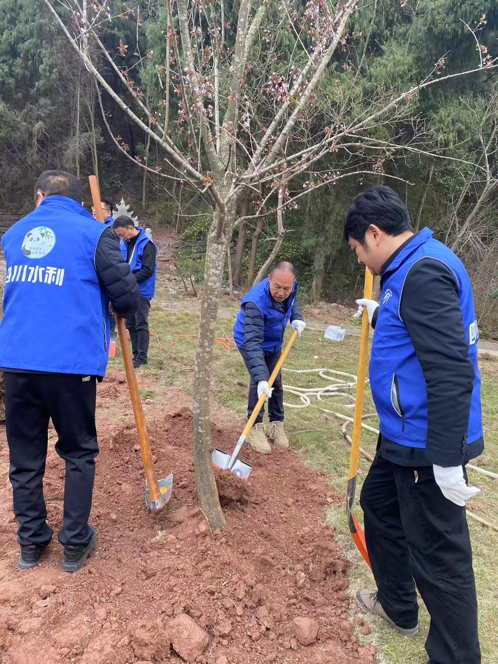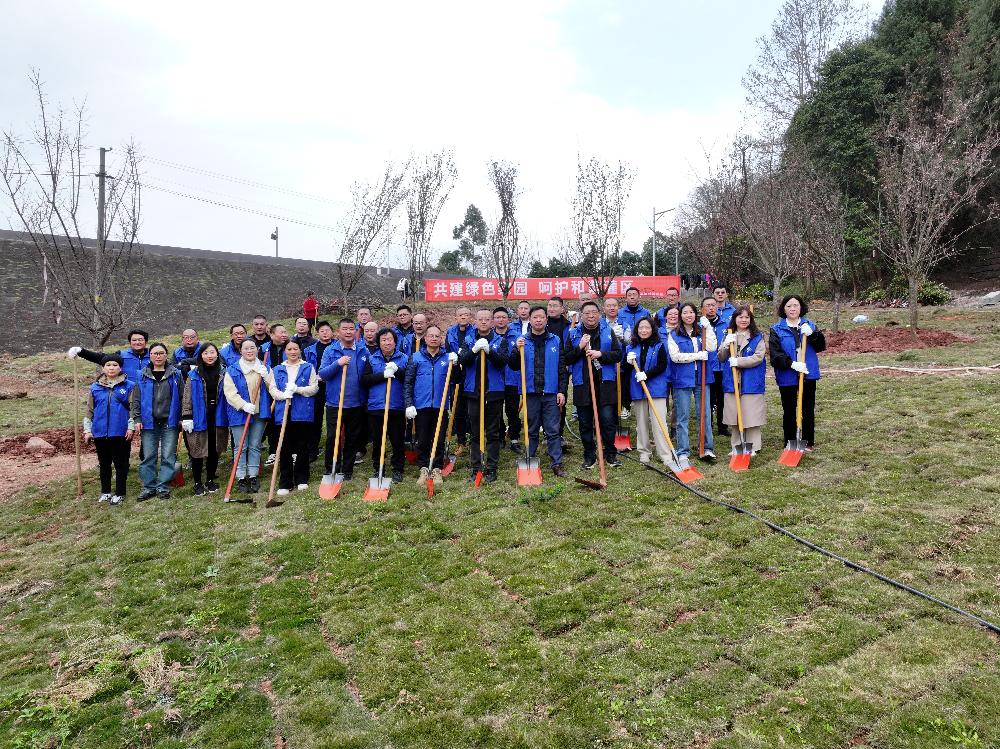 春阳煦暖,植树现场一派热火朝天的景象。干部职工们分工协作,挥锹铲土、扶苗填坑,经过半日奋战,200余株桂花、红梅及紫薇等苗木错落栽种,形成层次鲜明的生态景观。