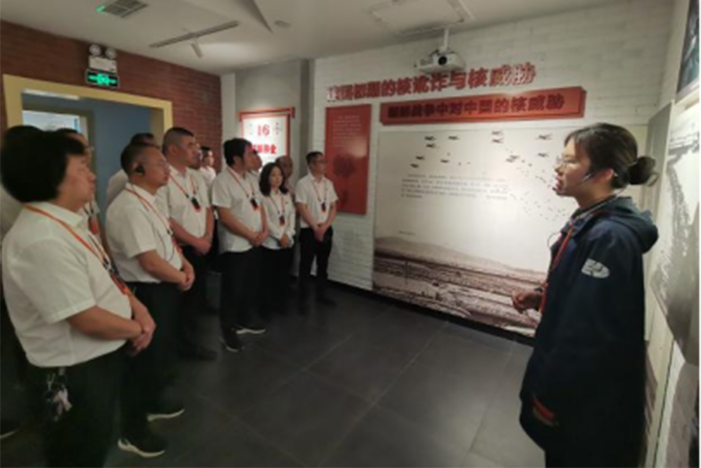 追寻历史记忆,厚植爱国情怀。在“两弹城”基地,大家回顾了我国“两弹”从无到有的艰辛研制历程,观看了邓稼先事迹纪录片,参观了邓稼先旧居、将军楼、两弹历程馆、防空洞等旧址。结合实物陈列、图文展示、场景模拟,大家真切感受到了王淦昌、邓稼先、于敏等老一辈科学家们为党和国家的事业无私奉献、奋斗不息的忘我精神和爱国情怀。在邓稼先旧居前,全体党员向邓稼先铜像鞠躬并敬献花束,全体党员重温入党誓词,表达了对爱国科学家的深切缅怀和崇高敬意。