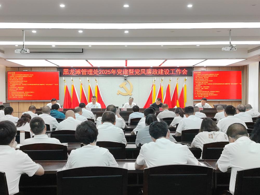 为庆祝中国共产党成立104周年,7月2日黑龙滩管理处召开2025年上半年党建暨党风廉政建设工作会议。党委书记、处长曾理出席并讲授党性教育专题党课。党委委员、副处长钟陵主持会议。