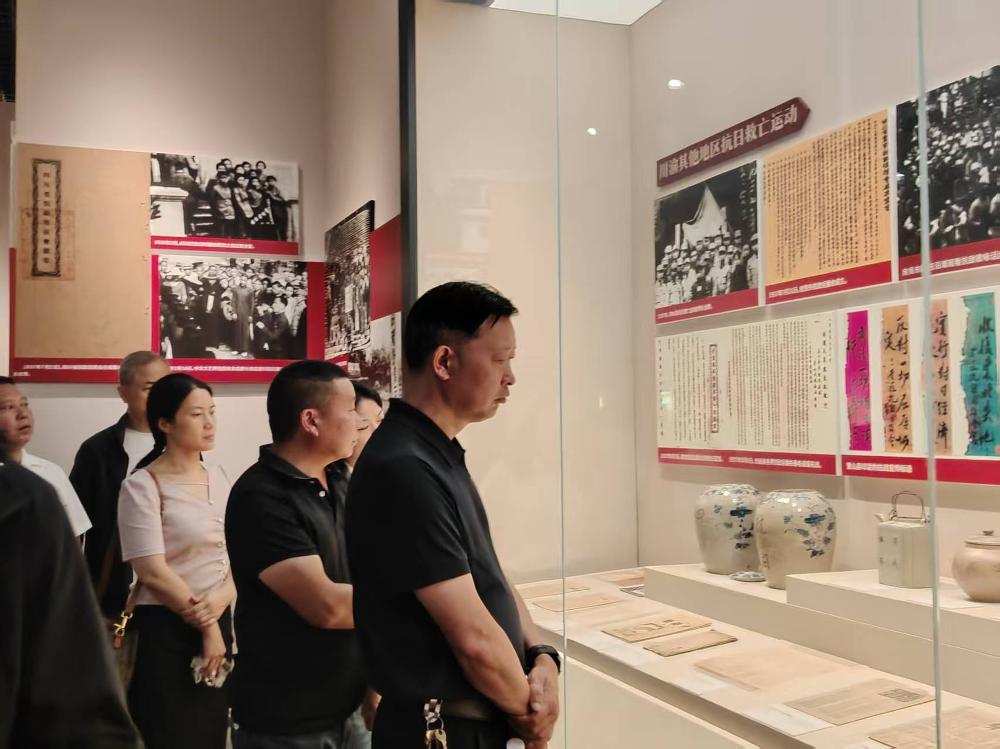 此次展览以“伟大胜利 川渝贡献”为主题,通过丰富的历史文物、珍贵的图片资料、详实的文献档案以及多媒体展示等形式,从“引领方向”“共赴国难”“稳固后方”“挺起脊梁”“高奏凯歌”五个部分,全方位、多角度地展现了中国人民抗日战争的艰辛历程和伟大胜利,深刻诠释了川渝地区在抗战中所作出的巨大贡献。党员们在参观过程中,认真聆听讲解员的细致解说,不时驻足凝视展品,被革命先辈们的英勇事迹和崇高精神深深打动。一张张历史照片定格了战火纷飞的岁月,一件件文物诉说着战争的残酷与艰辛,一段段影像资料让大家仿佛置身于那个硝烟弥漫的年代。特别是看到川渝地区人民踊跃支前、热血青年奔赴战场的场景,党员们对家乡人民在抗战中的奉献和牺牲有了更深刻的地认识。