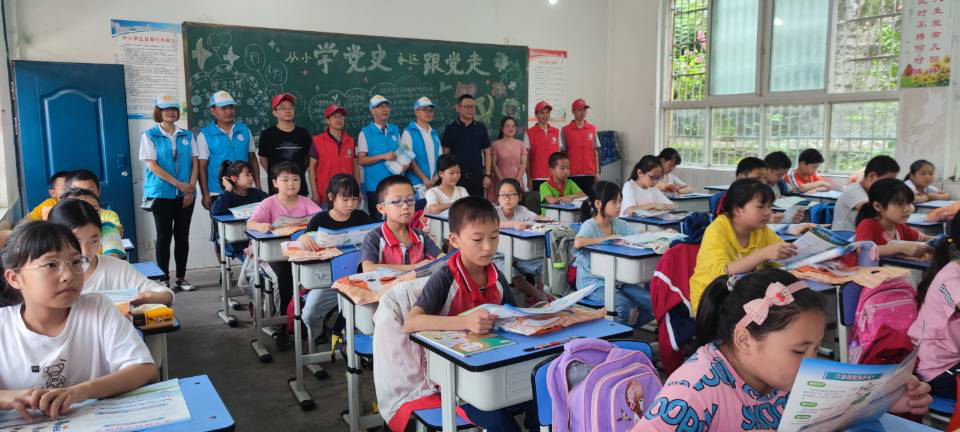 上午9点20分,全体志愿者在三台县鲁班镇太林场镇开始进行宣传,通过挂横幅、发传单以及播放音频的方式宣传节水,同时以发放一些小礼品为切入点,志愿者以一对一、一对多的方式,向周围的村民宣传节水知识。紧接着,又前往太林中心小学,“倡导绿色发展,服务水生态建设”“我们靠环境生存,环境靠我们保护”。在学校里,王兴琳、顾何希2位小朋友,对“进校园”非常感慨,她们表示:一滴清水、一片绿地、一个地球;节约用水、保护水资源,是大家共同的责任;一定要用志愿者叔叔、阿姨赠送的水彩笔、铅笔、作业本、橡皮擦、刨笔刀进一步描绘出“鲁湖新村”的美好。