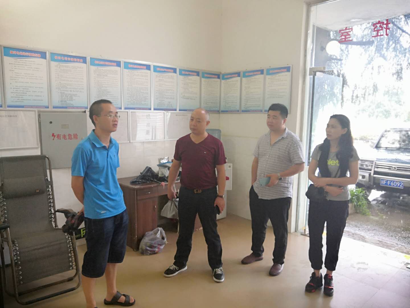 7月31日,中江县水利局、行政审批局一行对红旗电站银河车间取水许可进行验收,电站代表综合部主任范俊陪同参加验收。