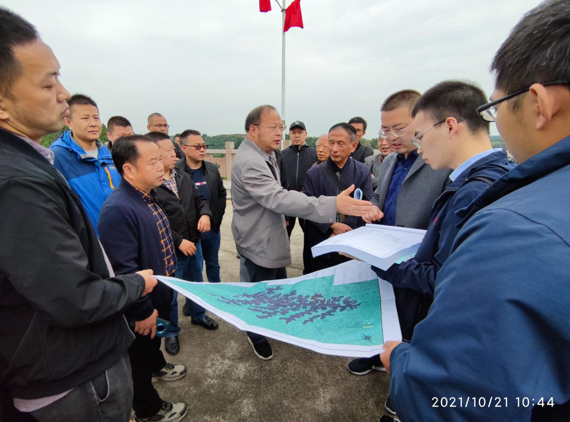 2021年10月21日,四川省水利厅组织专家组一行到鲁班水库除险加固初步设计项目现场进行查看,厅党组成员、总工程师梁军到现场对初步设计方案进行指导。