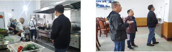 在食品加工区及就餐现场,检查组一行集中查看了相关制度、索证索票、晨检、食品留样、分区、食材、卫生、消洗等专项工作,对仍需完善的地方,现场交流指出了改进提升意见。