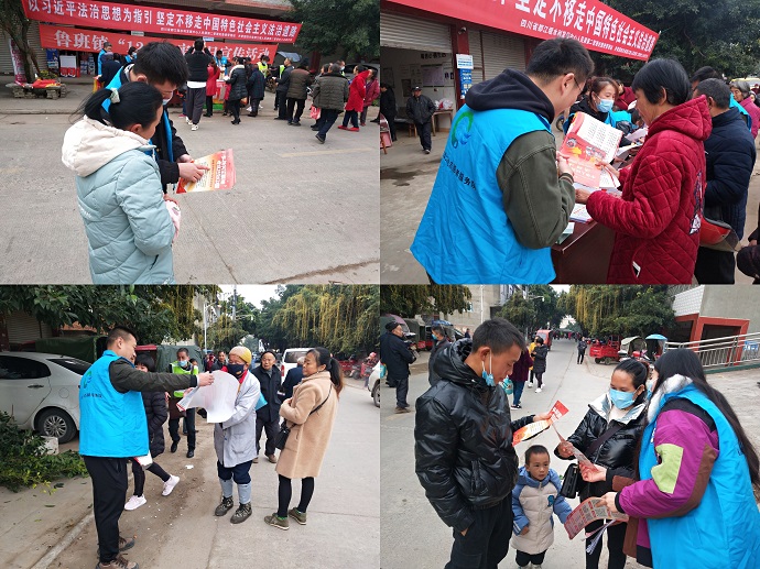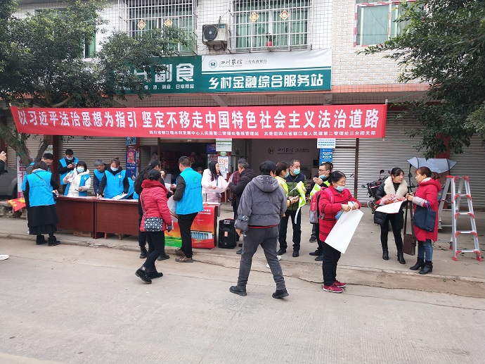 为深入学习贯彻习近平法治思想和习近平总书记“七一”重要讲话精神,全面贯彻落实党的十九届六中全会精神,引导广大人民群众树立宪法至上意识、增强宪法观念、自觉维护宪法尊严。2021年12月3日,三台县水利局、鲁班镇人民政府、鲁班管理站三部门联动,在鲁班镇太安场镇开展以“以习近平法治思想为指引 坚定不移走中国特色社会主义法治道路”为主题的宪法下乡进村宣传活动。