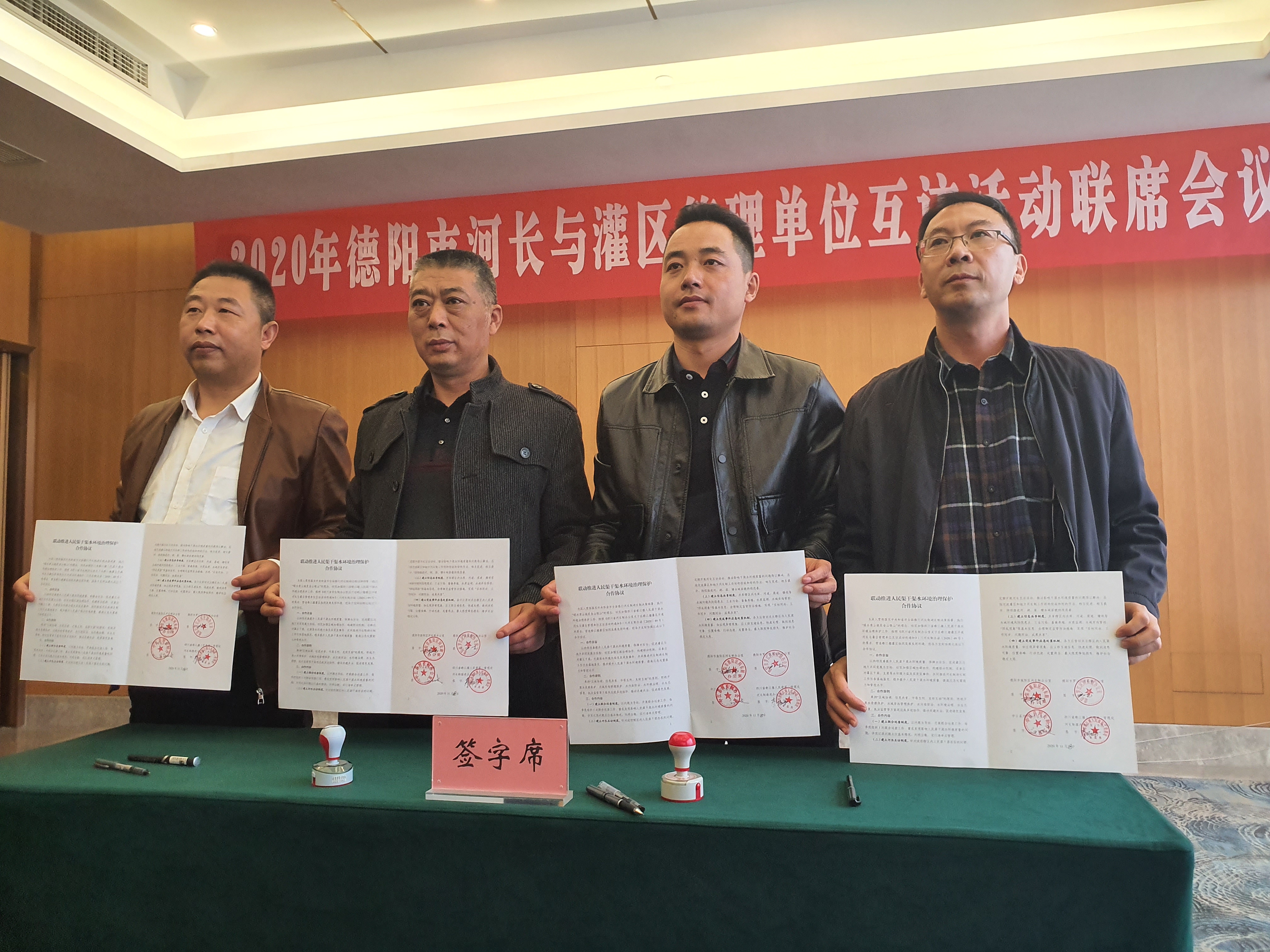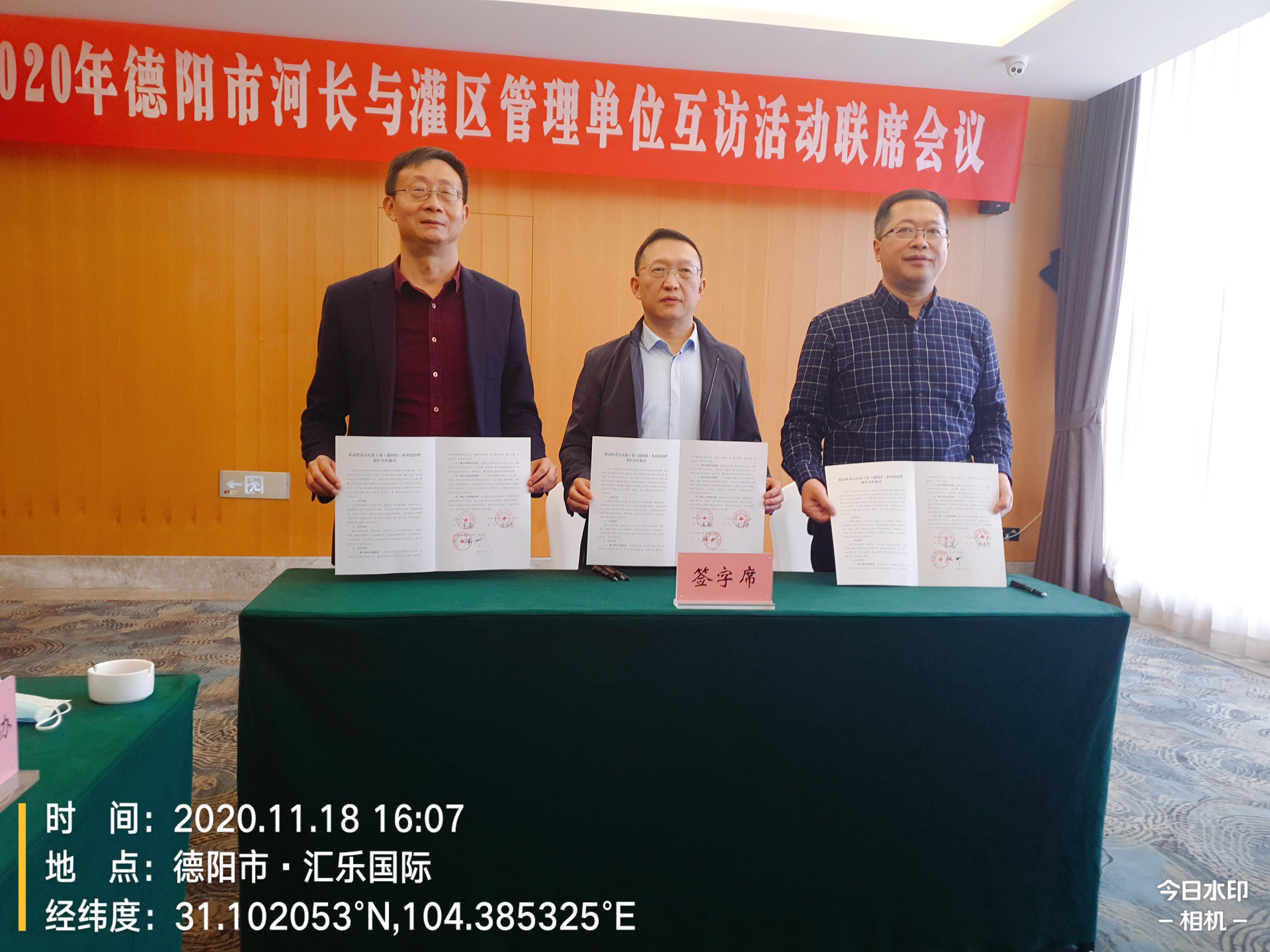 为深化都江堰灌区河长制湖长制工作,切实加强灌区水环境治理保护,按照《四川省河长制办公室关于在都江堰灌区开展河长与灌区管理单位互访活动》(川河长制办函〔2020〕49号)的要求,2020年11月18日,人民渠二处和德阳市河长制办公室,旌阳区河长制办公室、罗江区河长制办公室、中江县河长制办公室在德阳市签署《联动推进水环境治理保护合作框架协议》。