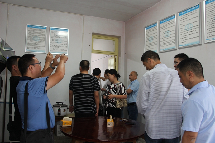 人民渠一处主任邓海林一行在中江站站长李坤洲陪同下实地参观了中江站职工食堂餐厅、厨房,听取李站长介绍职工食堂情况,并在中江站会议室主持召开了职工食堂管理交流座谈会。