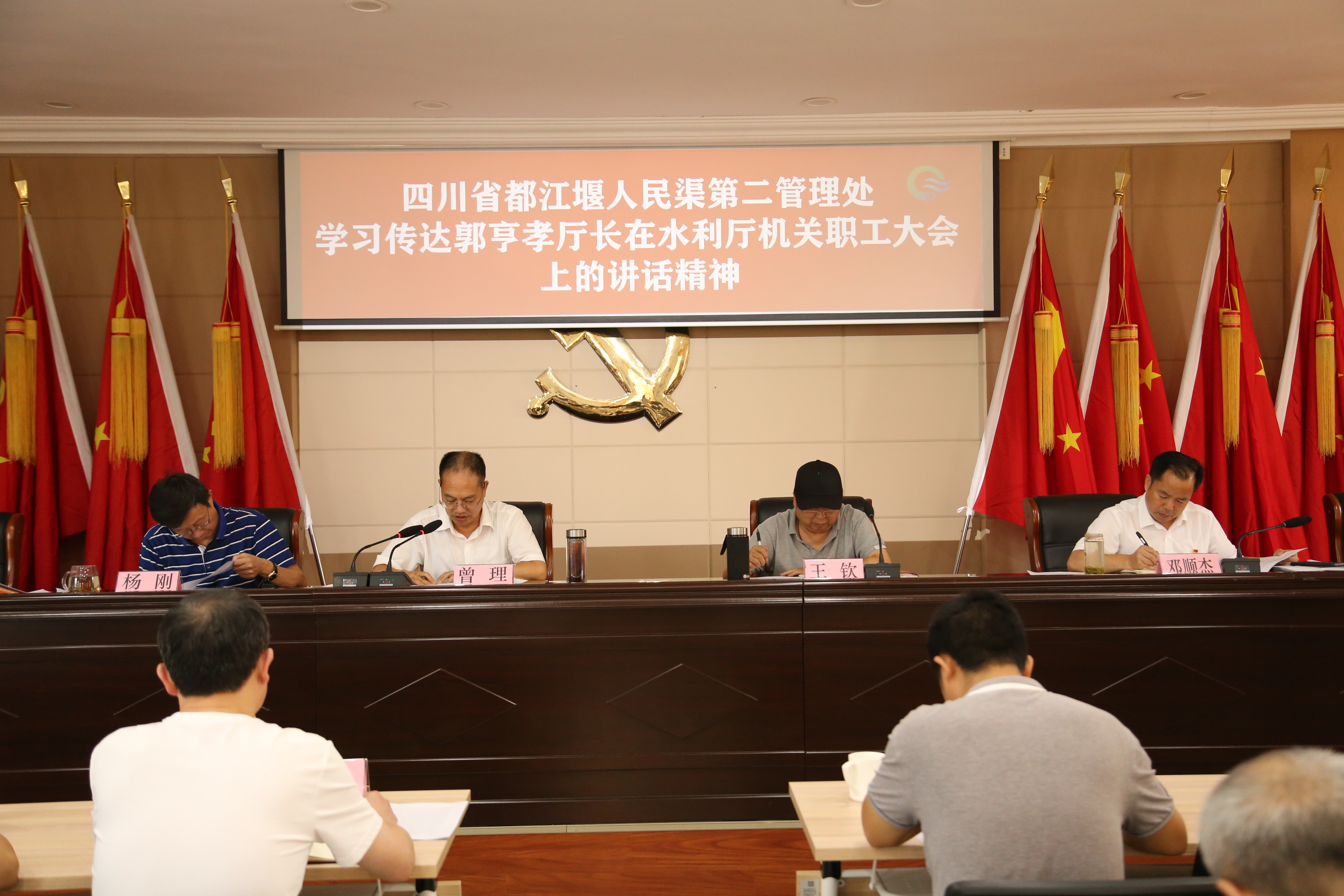 2021年7月20日,人民渠二处组织召开专题学习会,贯彻落实郭亨孝厅长在水利厅机关职工大会上的讲话精神,在家处领导、机关科室负责人、基层站负责人及相关人员参加会议。党委书记、处长曾理主持会议并讲话。