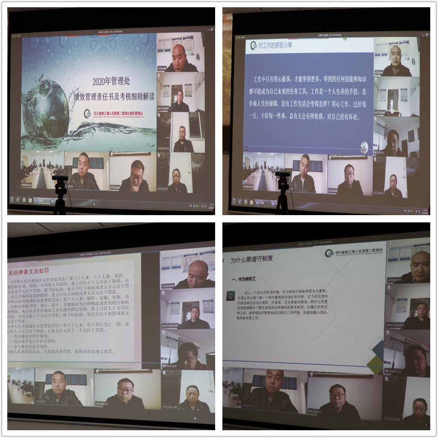 为有序推动全站各项工作顺利开展,及时传达全处工作会议精神,做好德阳站2020年工作安排,4月8日,德阳管理站召开了2020年全站职工会,会议以视频会议的形式召开,站机关会议室为主会场,7个工段为分会场。
