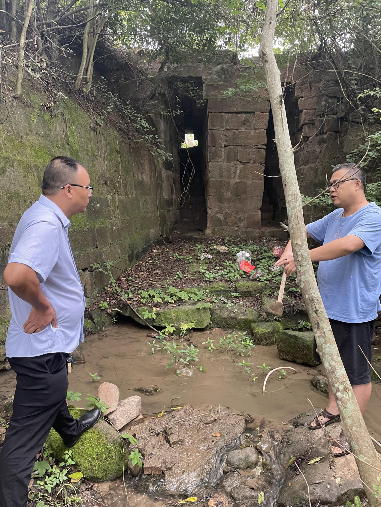 7月21日,党委书记、处长曾理,工会主席邓顺杰率处防办、办公室、安监科等部门负责人前往100桩号漏水处实地查看现场情况,曾理要求中江站做好重点监护,并同相关科室协商制定整治方案。