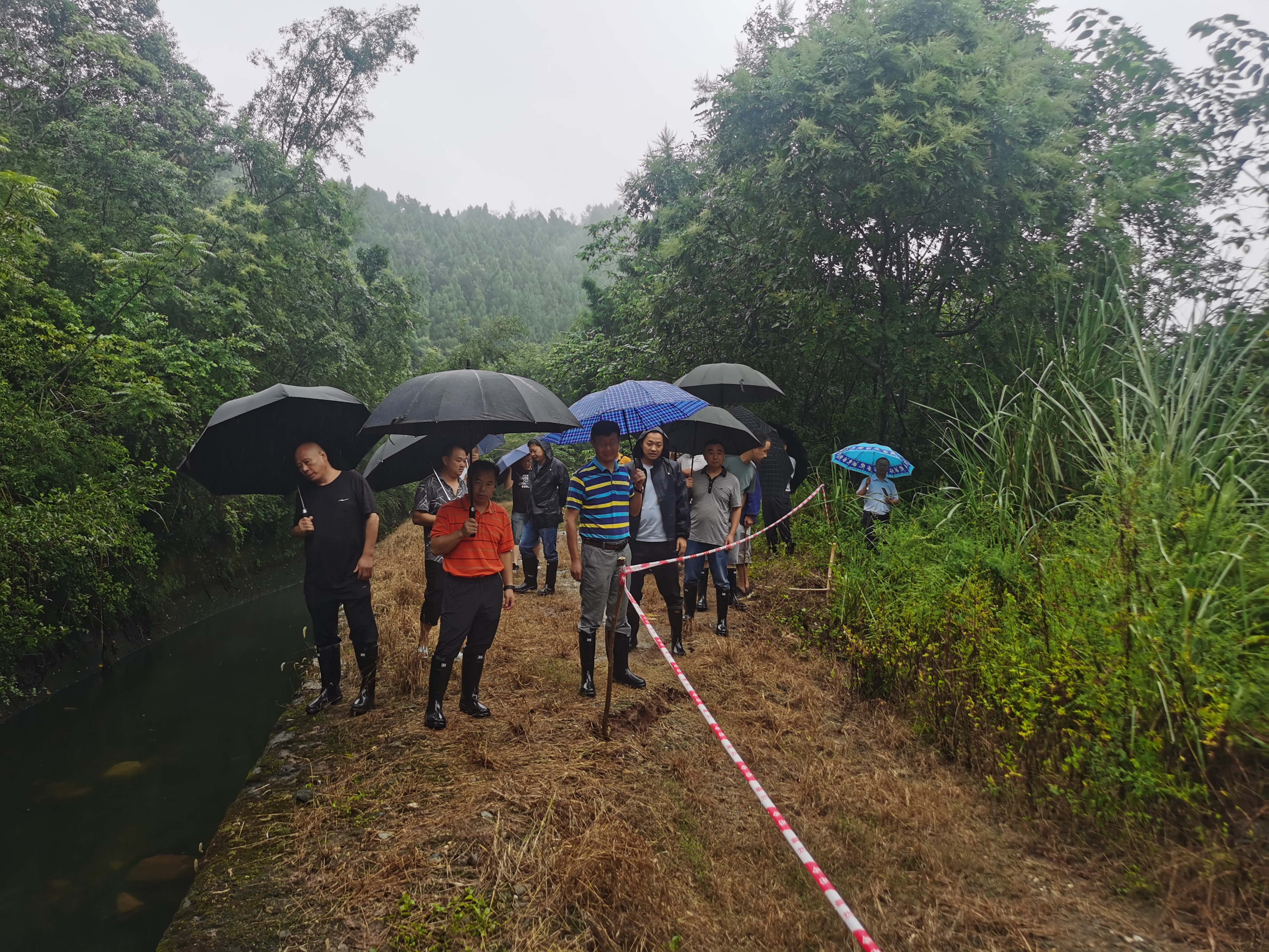 接到险情报告后,人民渠二处相关部门高度重视。邓顺杰副处长、杨刚总工程师立即召集应急抢险专家组于9月5日上午到鲁联干渠11+800处实地查看险情。同时,三台县政府也组织相关部门同时到达现场。针对险情,专家组汇同地方政府开展险情判断、监护措施、以及处置方案展开讨论。一致同意:一是继续对该段进行加密巡视,落实双重监护;二是在工程实施前作好沉降段及裂缝的监测 ;三是初步计划以清除部份滑坡体荷载、开挖回填、做挡墙的方式消除安全隐患;四是落实地质灾害三避让原则。