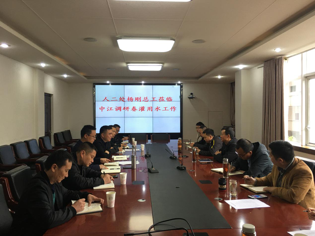 中江县位于川中丘陵地区,是传统农业生产大县,其粮食产量连续四年稳居全省前列,喜人的成绩离不开都江堰灌区的水源支撑。都江堰灌区两条高速水道之一的人民渠有130余公里主干渠穿越境内,控灌其70.3万亩灌面,控灌范围占人民渠二处灌区有效灌面的三分之一。为全力做好今年春耕生产工作,4月1日人民渠二处到中江县调研春耕生产准备工作。