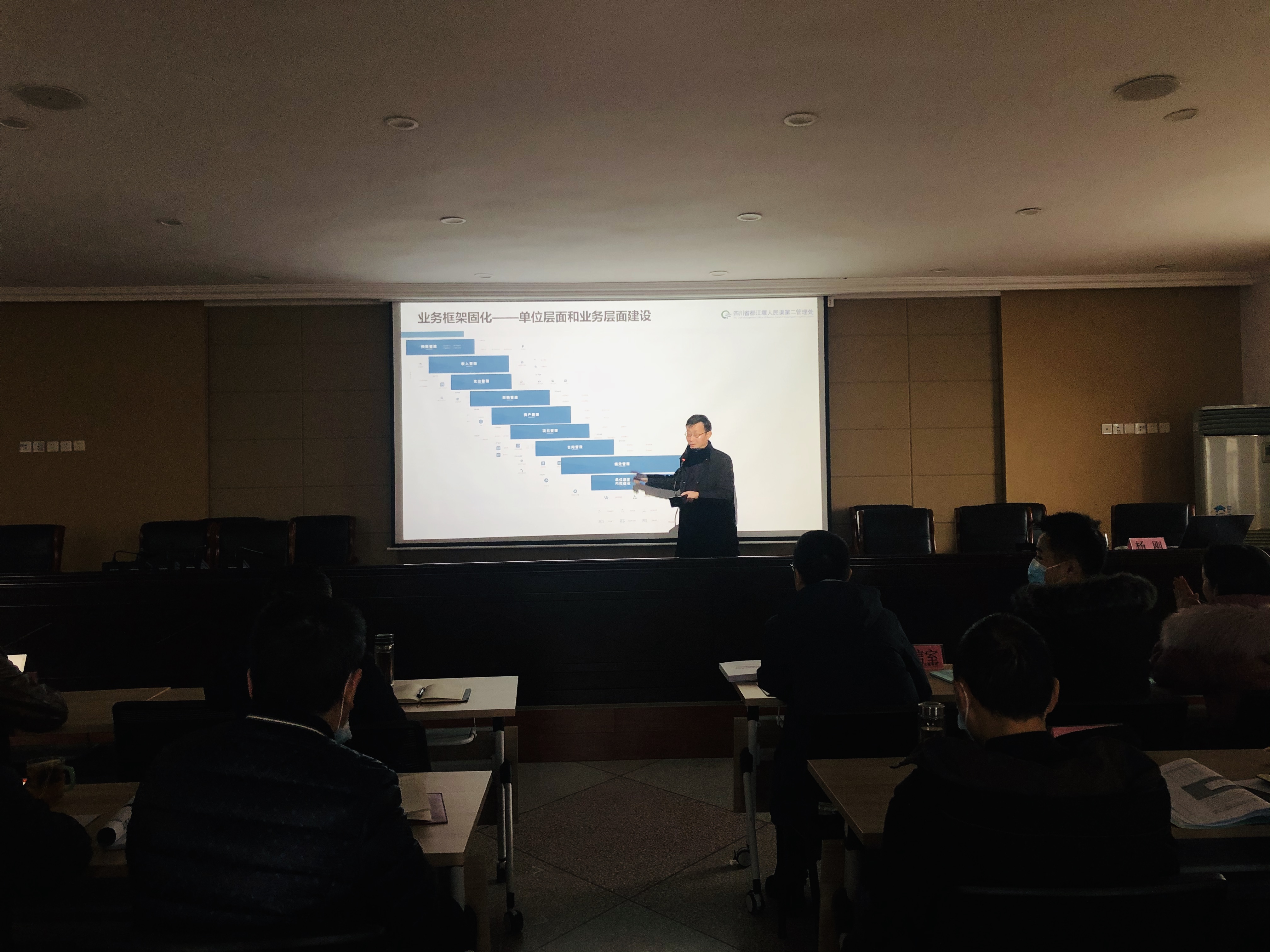为较快较好适应都江堰灌区水管单位一体化新形势,全面提升单位服务质量和管理水平,人民渠二处积极推进内控建设,目前内控管理信息化系统已顺利上线运行。为让单位全体干部职工能更熟练掌握运用该系统,12月25日上午,由财务科牵头组织召开了“内控管理系统操作培训会”。全体在家处领导、机关各科室及基层各单位负责人及相关人员参加会议。