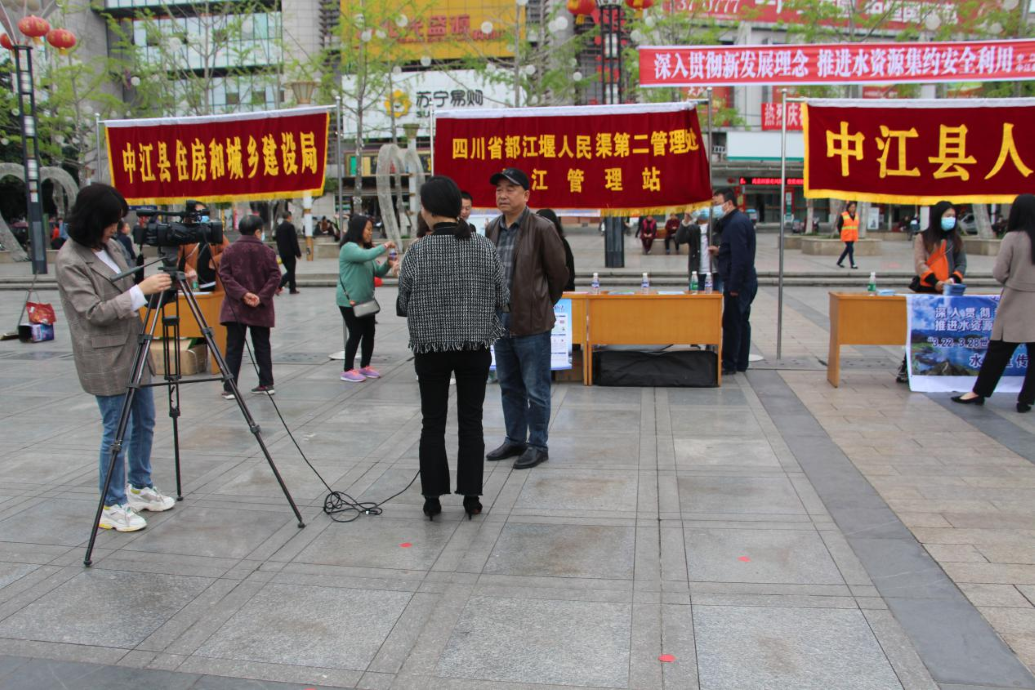 魏光伟副处长就人民渠二处水法工作的宣传以及开展情况接受了中江县广播电视台的采访。