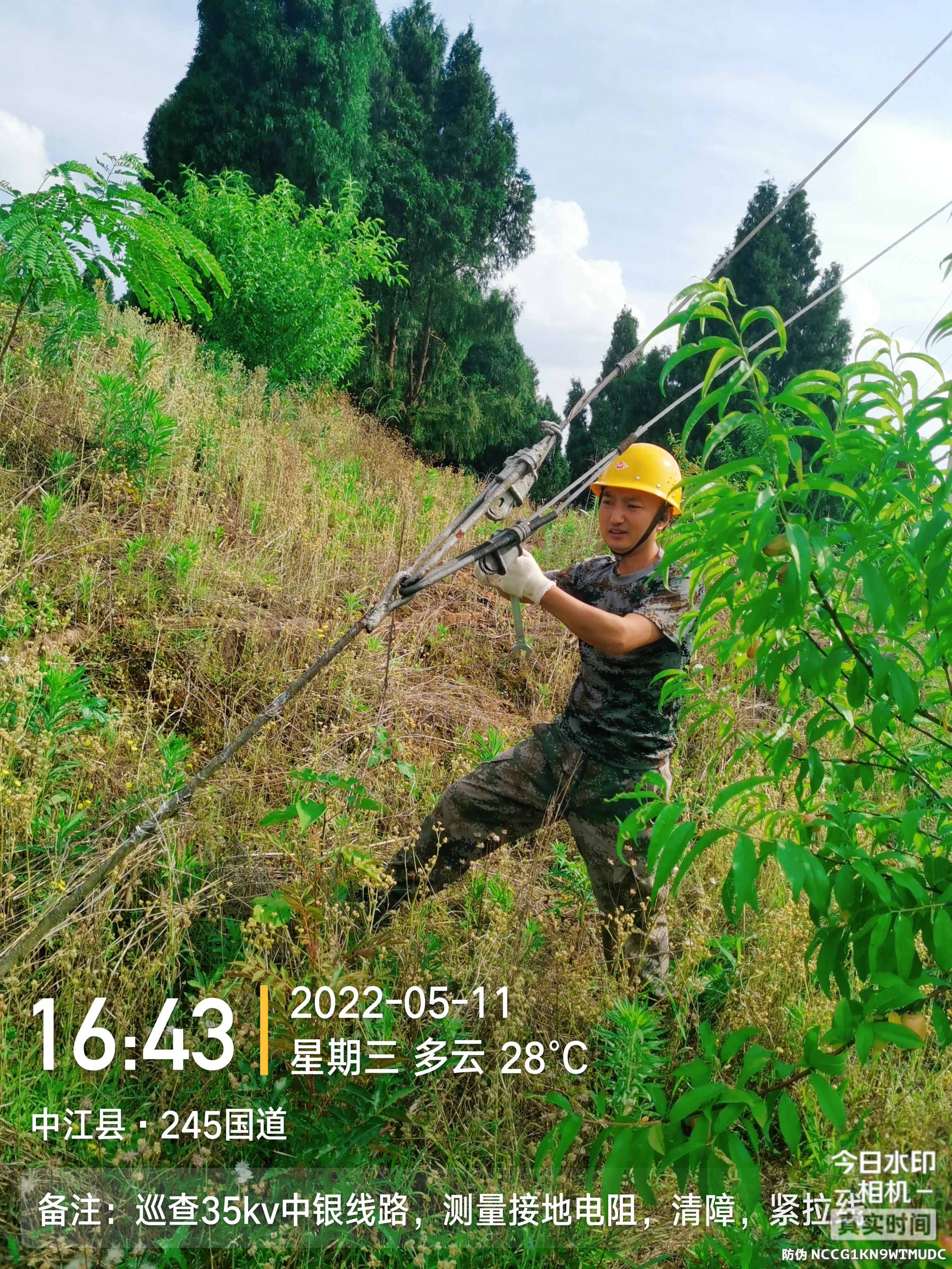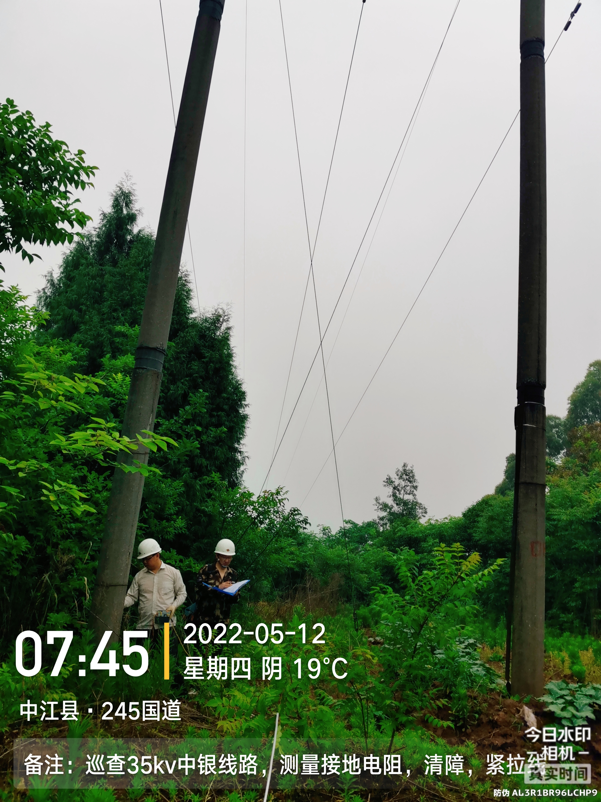 本次巡检工作,正值银河车间2台机组高效运行期间,在确保车间安全生产的前提下,打破正常的生产及运行安排,全站总动员,取消轮班休息,组成巡检4人组和运行3人组,开展巡检测试工作。巡检组每天早上5点半从车间出发,带上专业测量仪器、记录本、巡检工具,徒步完成了全线16.8kM上网输电线路、避雷线巡查和通道清障,对全线60多根电杆的拉线、横担金具、绝缘子等运行情况逐一进行了仔细巡检,同时还对每根电杆进行了接地电阻检测和接地装置连接部件复紧工作,并拍照和记录,形成隐患清单和线路台账。经过精心组织,细致安排,巡检组不辞辛劳,在烈日的烘烤下仅用3天时间就完成了本次全线的巡检和测试任务。