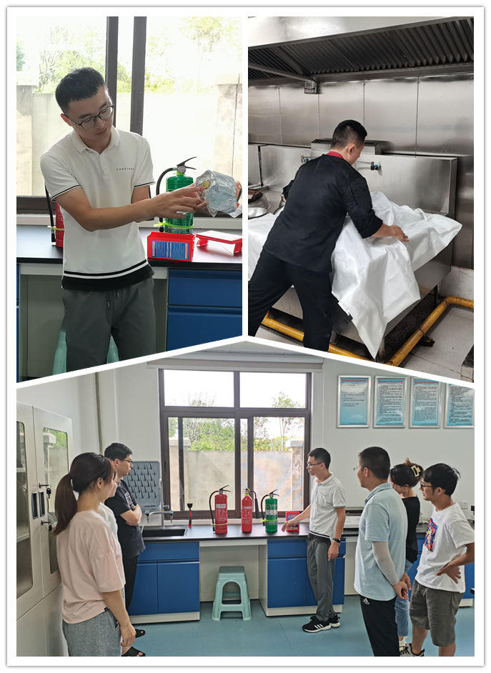 灌溉试验站安全员组织全站在岗职工和实训人员,熟悉站内各建筑安全逃生出口和逃生路线,学习干粉灭火器、二氧化碳灭火器、水基灭火器、灭火毯和一次性逃生呼吸器的使用方法和注意事项,提升人员消防应急处置能力。