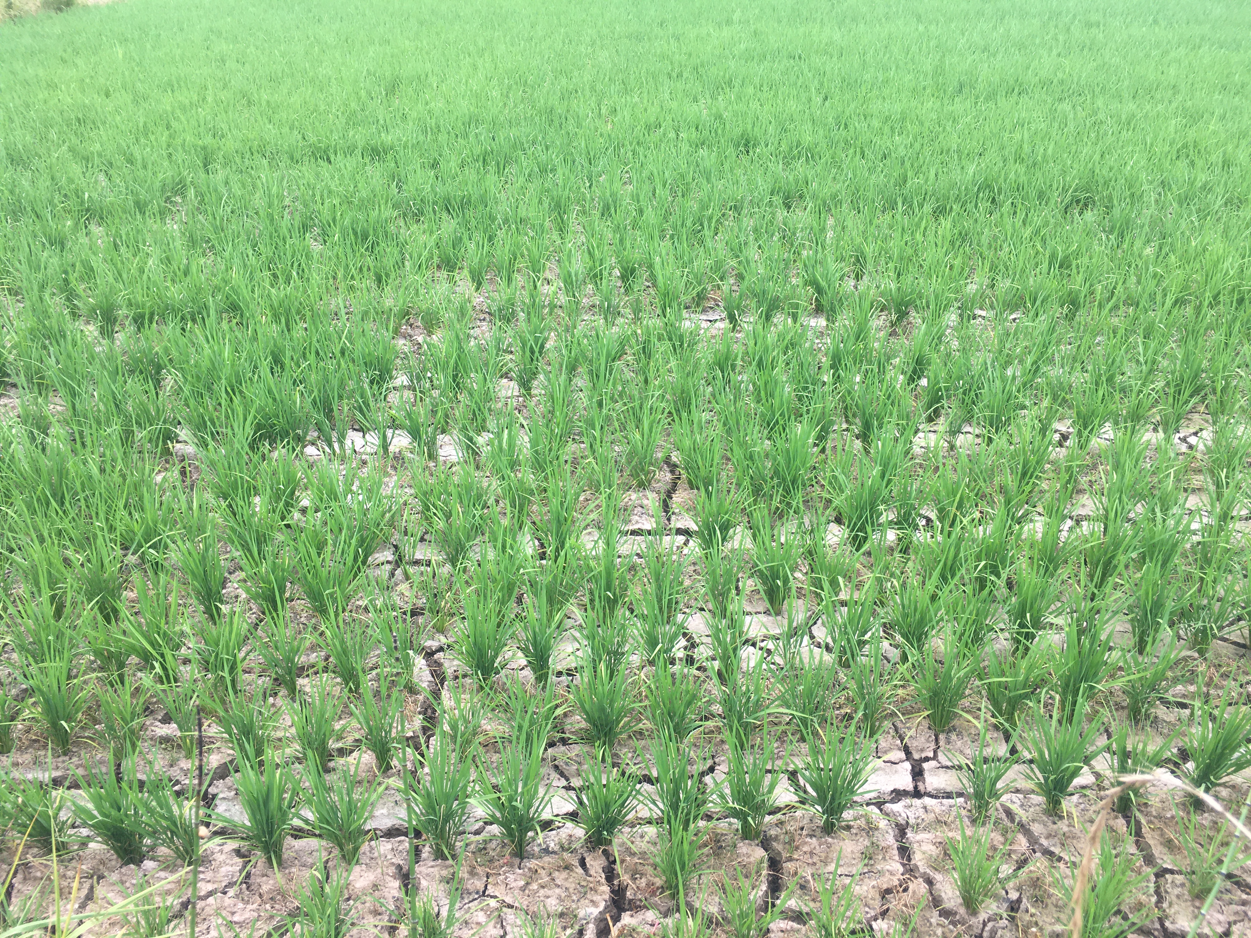 调研组一行首先前往灌区罗江区新盛镇查看旱情。该片区的水稻田已经出现成片干裂的情况,蓄水塘堰接近干枯。当地村民介绍,当前水稻正处于拔节孕穗初期,也是水稻晒田后掺灌的关键期,遭遇连续高温天气,急需灌溉用水来保障水稻生长。