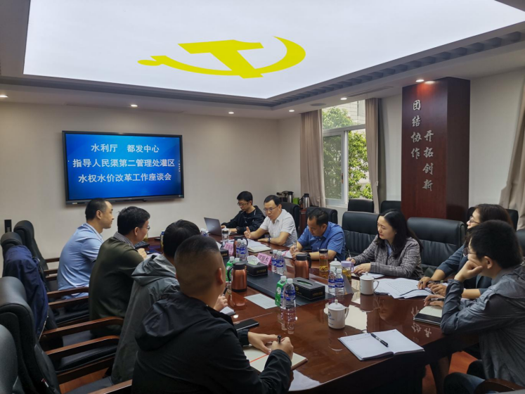 9月23日,水利厅水改办副主任邓顺杰、都发中心水改专班邓海林一行到人民渠二处召开座谈会,专题调研灌区水权水价改革工作。人民渠二处副处长杨刚及水改专班全员参加了座谈会。