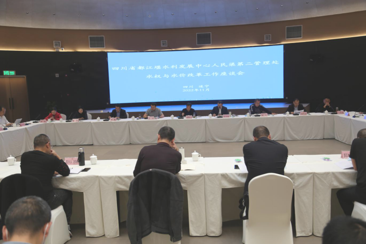为深入推进水权与水价改革与试点工作,11月3日,人民渠第二管理处在大英县组织召开了灌区水权与水价改革工作座谈会。厅水改办、都发中心水改专班领导,灌区部分县(市、区)委县政府副县级领导,灌区十县(市、区)水利(务)局、水利发展(水库)管理中心负责同志受邀参加会议。