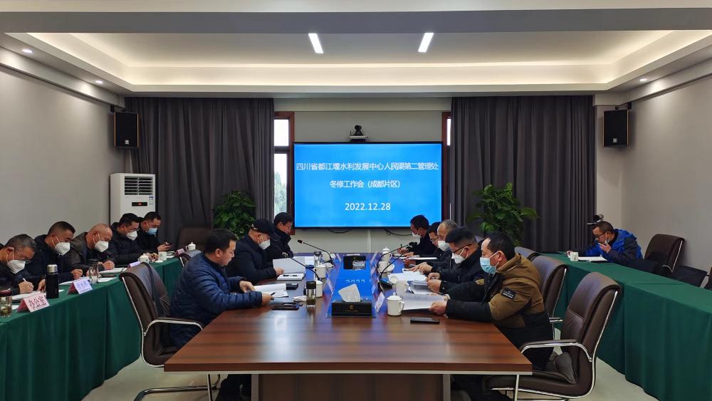 为贯彻落实都江堰灌区2022年冬修工作会议精神,切实抓好2022年灌区水利工程冬修工作,由于疫情影响2022年12月28日,人民渠第二管理处在德阳市召开人民渠二处灌区(成都片区)冬修工作会议。成都市水利务局分管领导、金堂县水务局主要负责同志、灌区水库服务中心及金堰水业公司负责同志受邀参加会议。