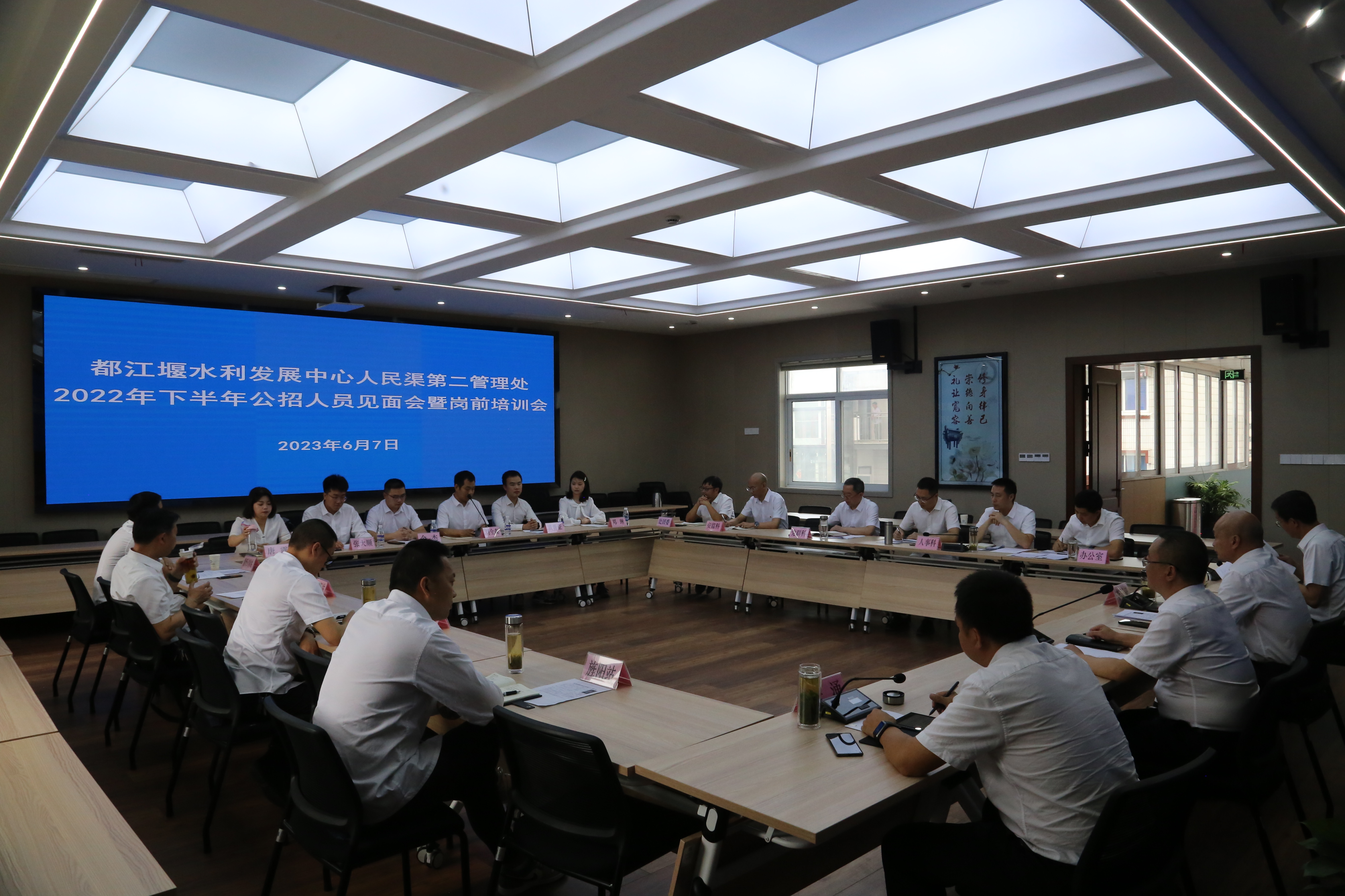 为推进学习贯彻习近平新时代中国特色社会主义思想主题教育走深走实,上好新进人员“入职第一课”,提升新进人员的政治意识与担当意识,6月7日,人民渠第二管理处组织召开2022年下半年公招人员见面会暨岗前培训会。会议由党委副书记周李军主持。