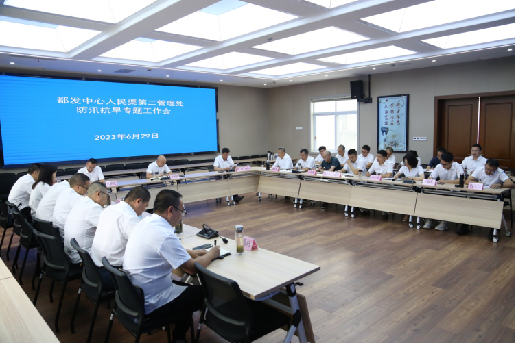 会议学习贯彻全省防汛减灾工作专题会议精神,传达了《省防指办公室关于认真贯彻落实省领导批示要求全力做好当前防汛减灾工作的紧急通知》及《朱泽华主任在四川省都江堰水利发展中心2023年水旱灾害防御暨大运会保供演练上的总结讲话》;通报2023年上半年春灌及抗旱用水情况;研究会商灌区蓄水保供调度方案;安排部署下阶段防汛抗旱及保供保蓄工作。