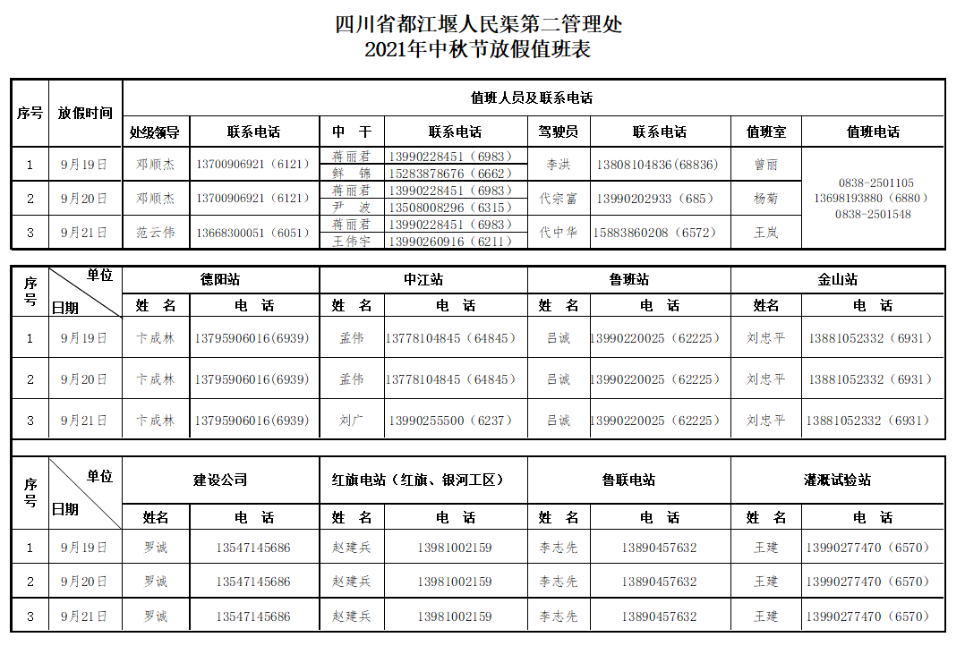 (二)认真执行《四川省都江堰人民渠第二管理处机关值班工作制度》,履行好带班、值班责任,按规范处理带班、值班期间发生的所有工作事项,完成各项工作任务,及时对工作情况进行报告、报备。